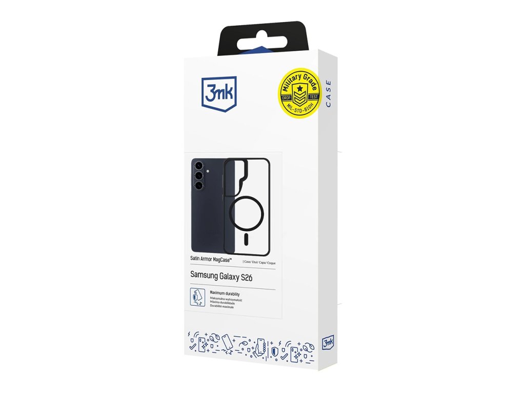 3mk – Satin Armor MagCase saténové ochranné MagSafe pouzdro pro Samsung Galaxy S26 – transparentní