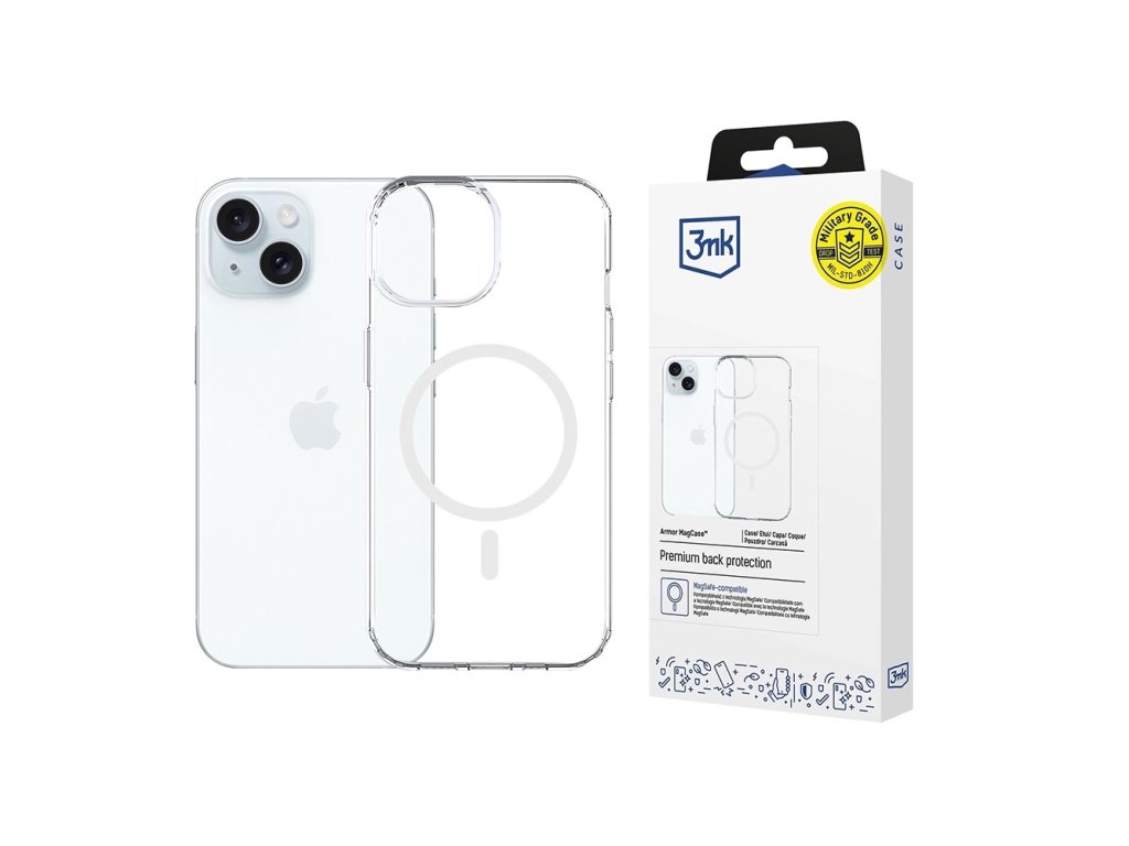 3mk - Armor MagCase magnetický odolný obal na iPhone 15 - průhledný