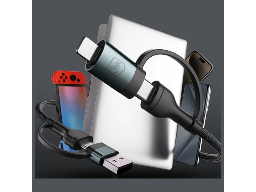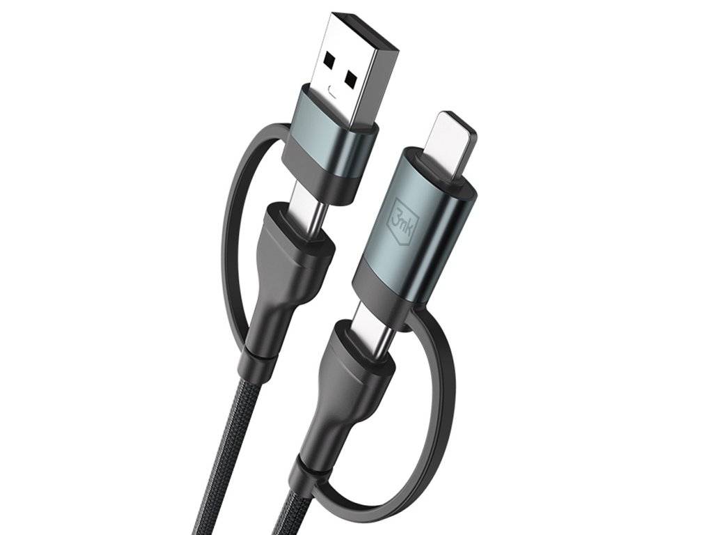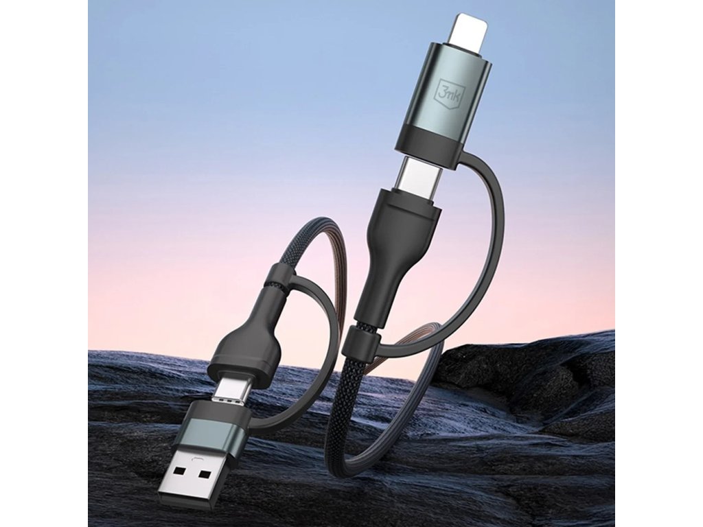 Pokud hledáš univerzální kabel, pak toto je produkt, na který jsi čekal. Datový kabel 3mk disponuje 4 typy konektorů, takže máš všechna zařízení vždy nabitá a připravená k použití.