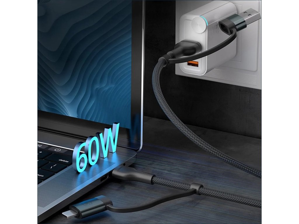 3mk - Data Cable Hyper N-Series univerzální datový a nabíjecí kabel USB/USB-C pro USB-C a Lightning Fast Charge 60W (9V/2A), 1,2m – černý