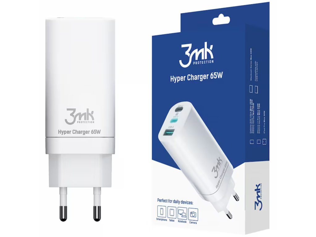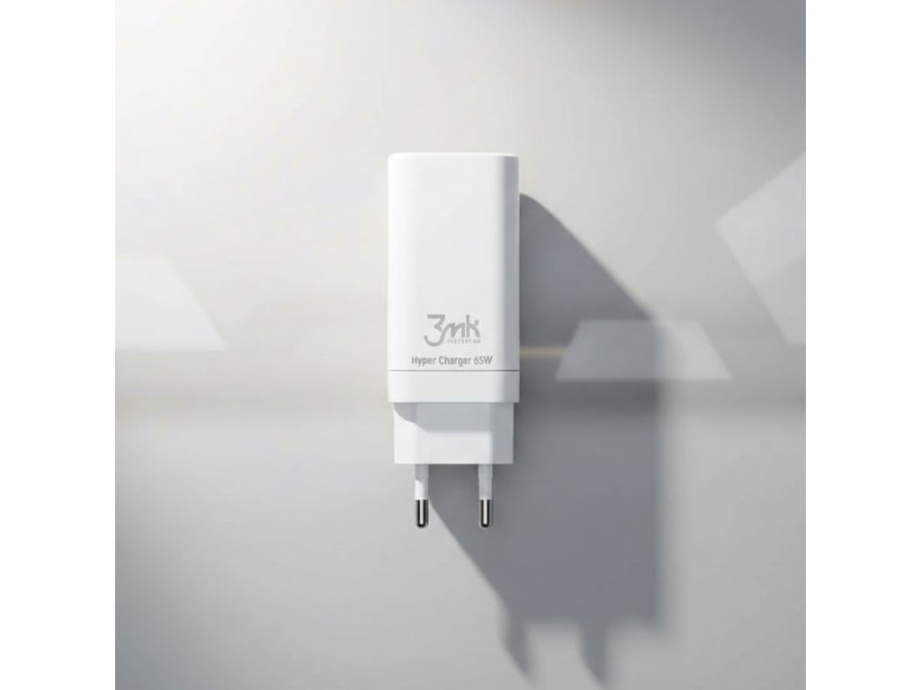 3mk - Wall Charger Hyper síťová nabíječka (2× USB-C, 1× USB-A, GaN technologie, Quick Charge, 65W) - bílá