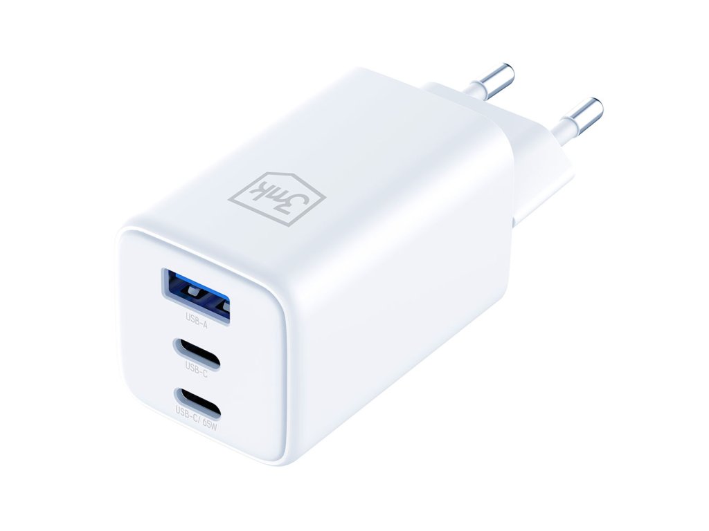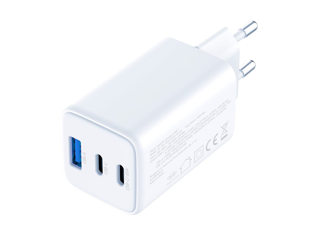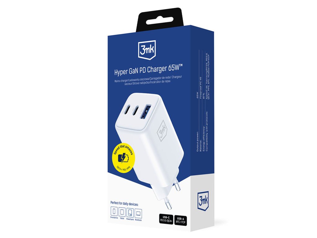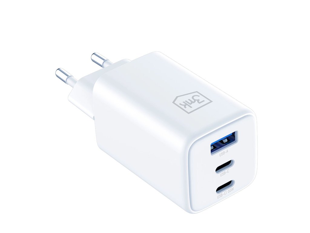 3mk - Wall Charger Hyper síťová nabíječka (USB-A/USB-C, GaN technologie, 65W, QX4+, nehořlavý materiál V0) - bílá