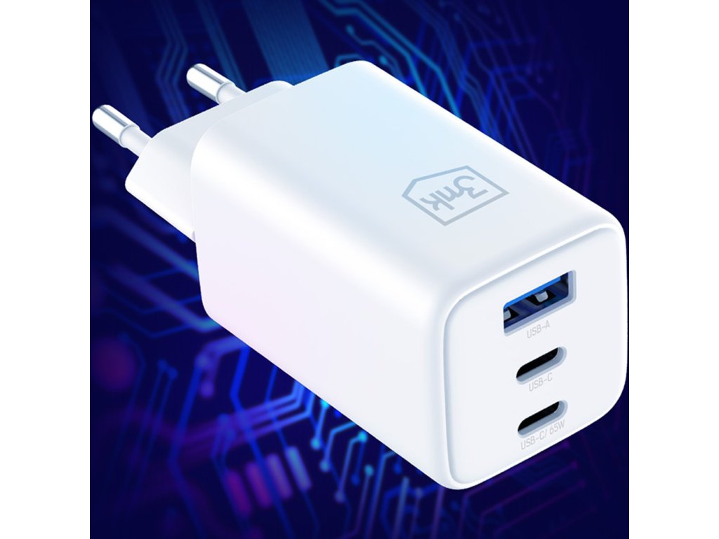 Nabíječ do zásuvky 3mk využívá technologii GaN, která umožňuje malé rozměry a vysokou energetickou účinnost, poskytující velký výkon v kompaktním formátu.