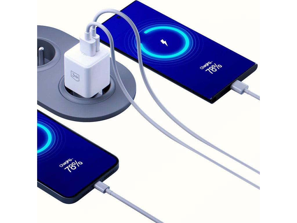 3mk - Wall Charger Hyper síťová nabíječka (USB-A+USB-C, GaN technologie, QC4+PD, 20W) - bílá