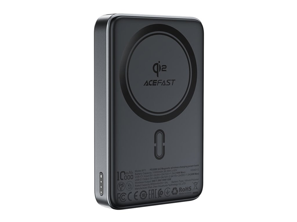 Acefast – Magnetic Power Bank (M11-10000) magnetická powerbanka USB-C 10000 mAh PD30W Qi2 certifikace s LED indikátorem – černá