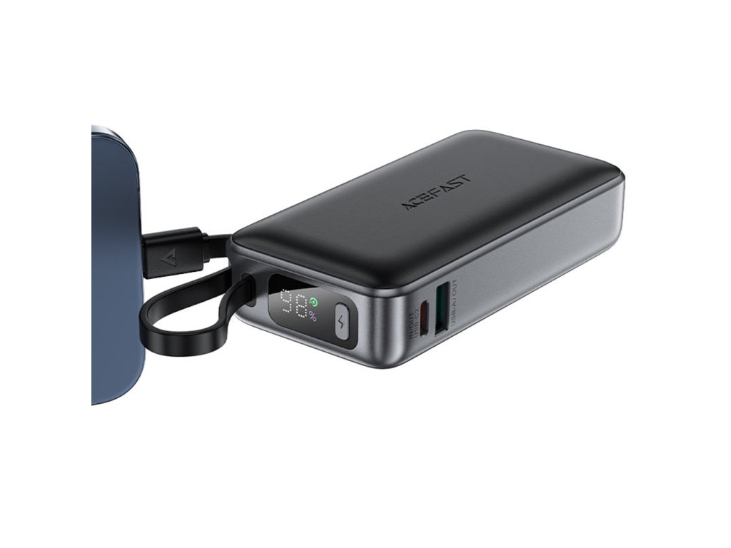 Acefast – Power Bank (M7-10000) powerbanka s USB-C kabelem USB-C + USB 10000 mAh 30W s digitálním displejem – černá