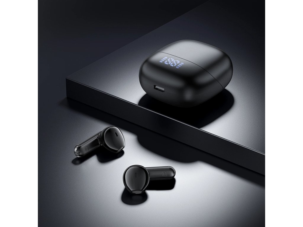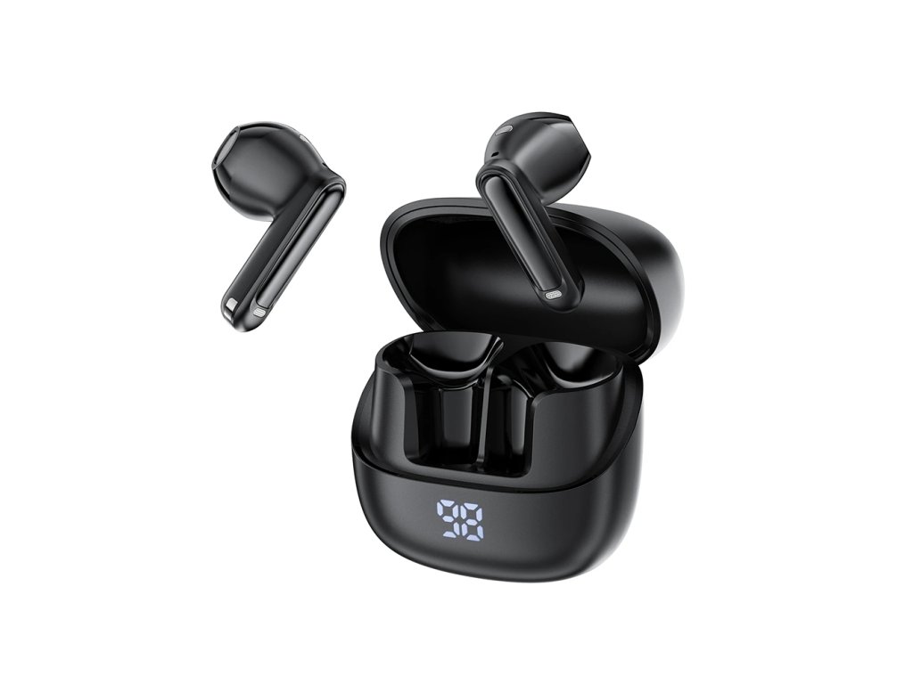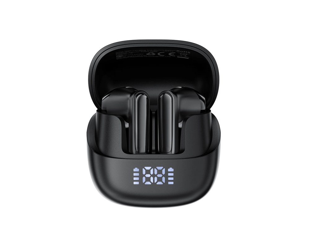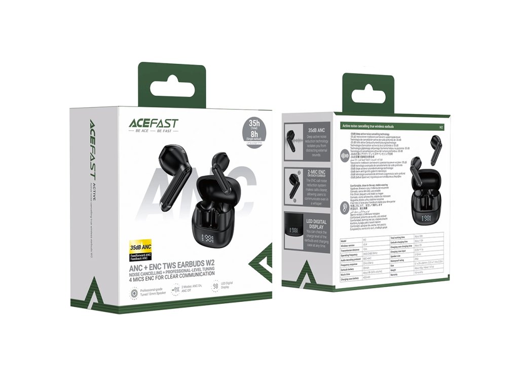 Acefast - bezdrátová sluchátka W2 s TWS, Bluetooth 5.4, 4-mikrofonovým ENC, IPX4, 400mAh baterií, LED displejem, magnetickým designem - černé