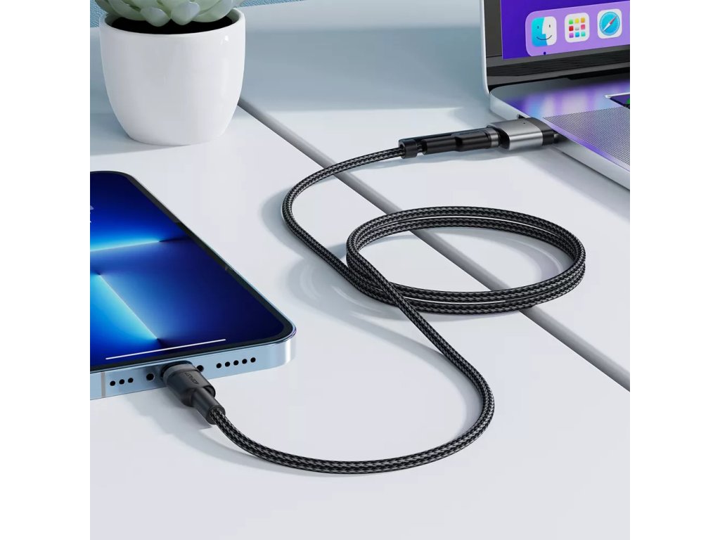 Odolnost tohoto nabíjecího kabelu je realizována pletením z prémiového nylonu spolu s konektory z TPE vyztuženými hliníkovou slitinou.