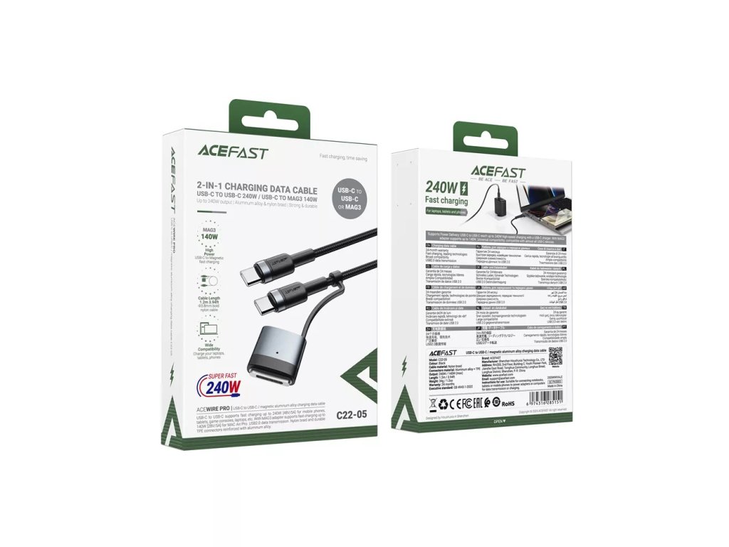 Acefast - Data Cable datový a nabíjecí kabel USB-C na USB-C MagSafe 3 adaptér Fast Charge 240 W (48 V / 5 A), 1,2 m – černý