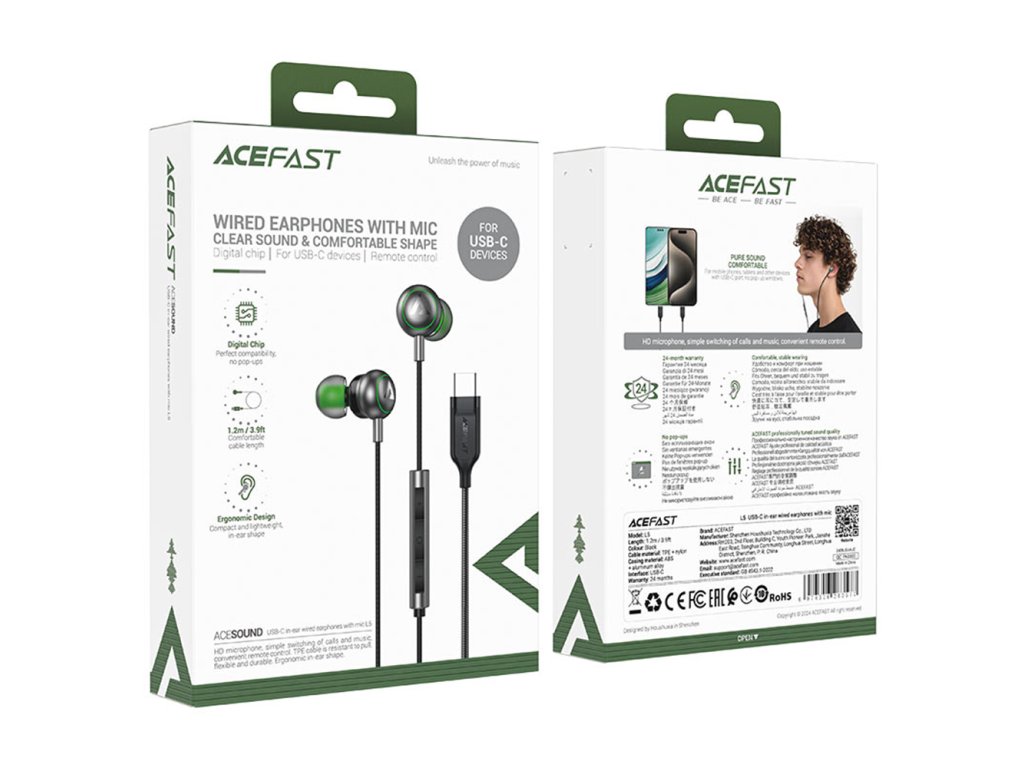 Acefast drátová sluchátka L5 – USB-C, do uší, s mikrofonem, kabel 1,2 m, černá