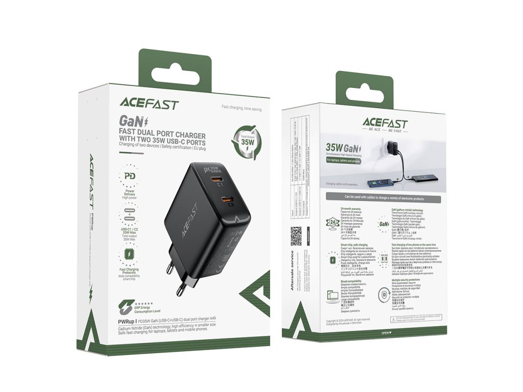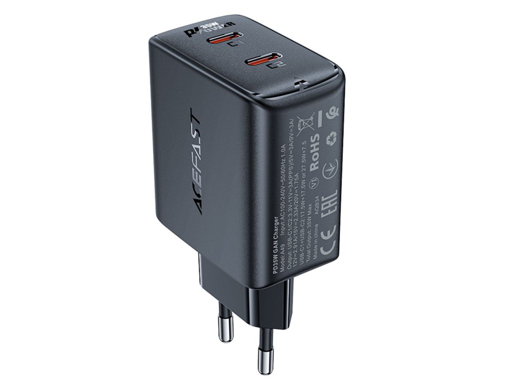 Acefast GaN nabíječka A49 – 2× USB-C, 35 W, univerzální, Power Delivery, černá