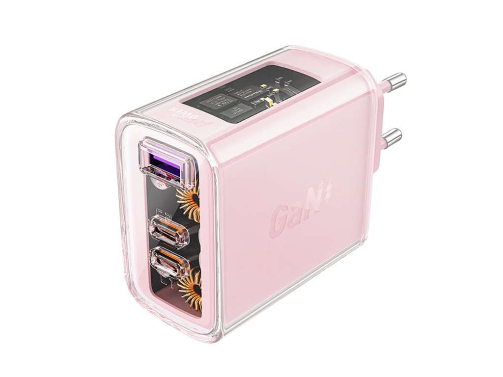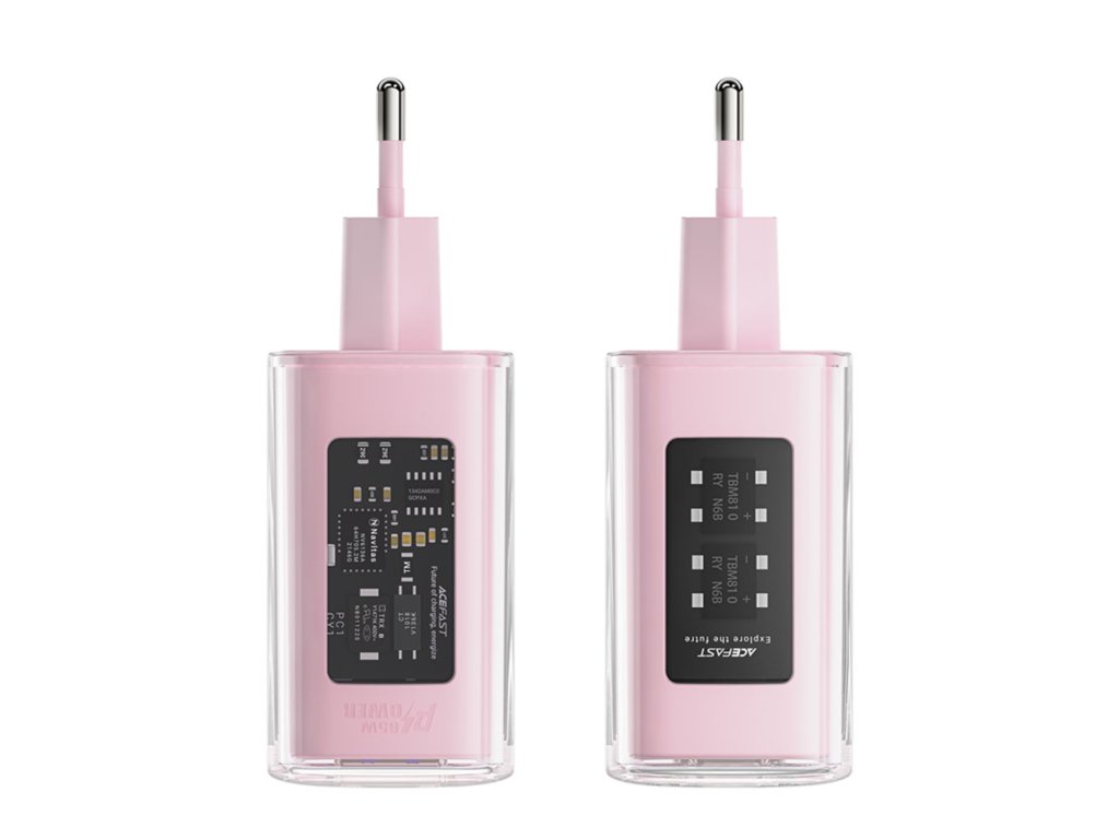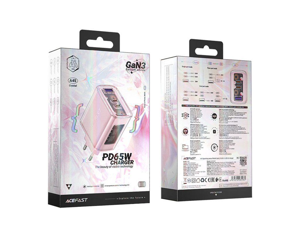 Acefast GaN nabíječka Exploration A45 – 2× USB-C, USB-A, 65W PD, rychlé nabíjení, Cherry Blossom