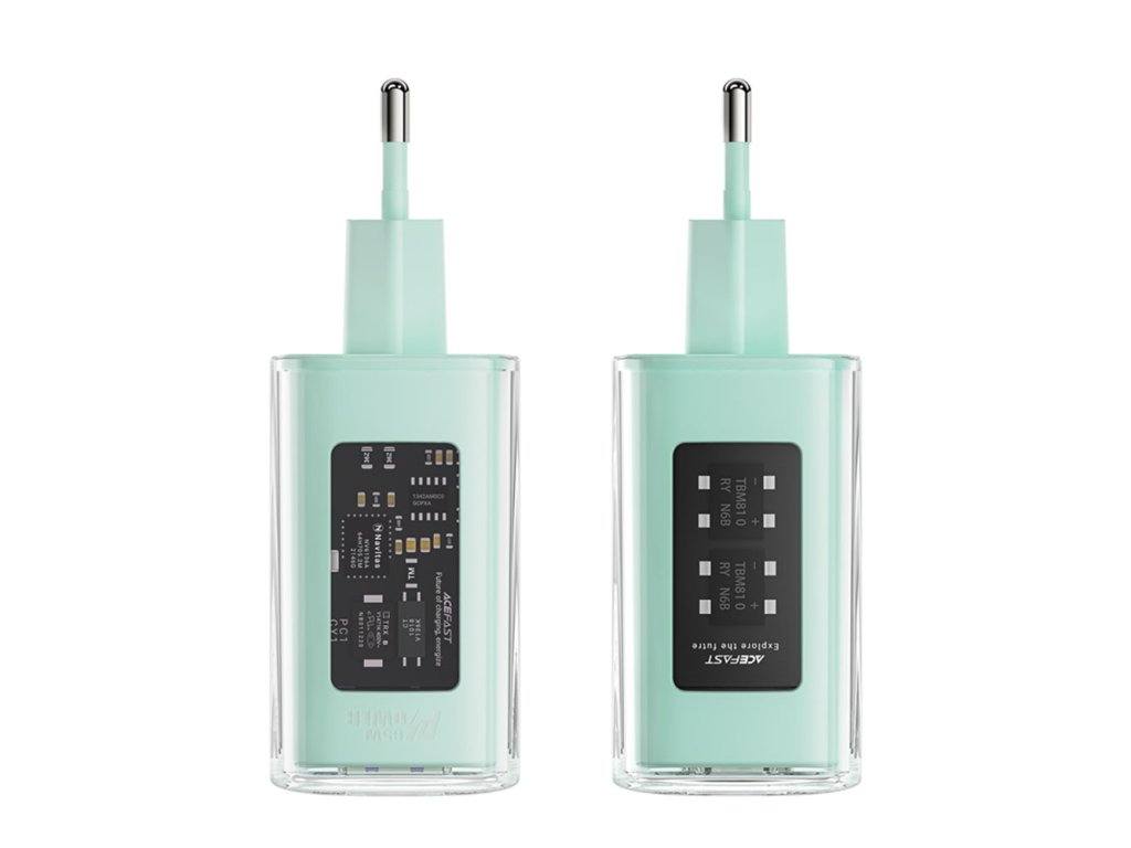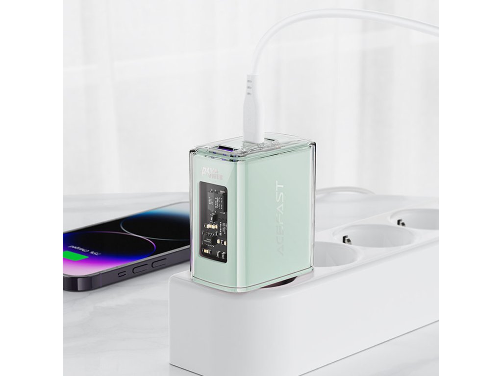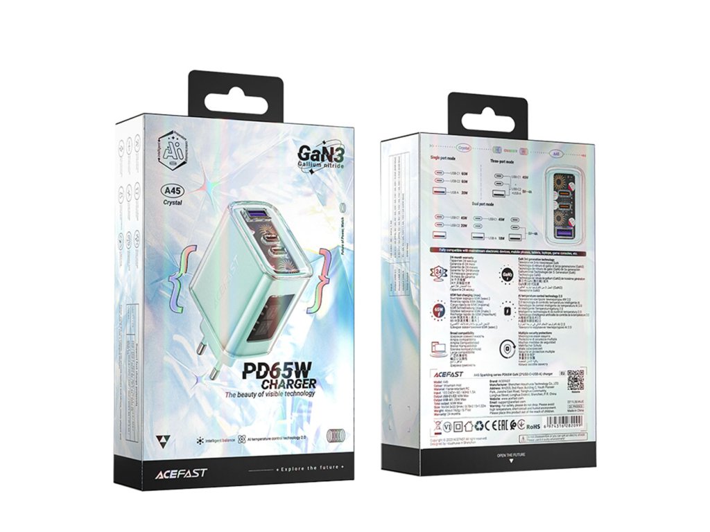 Acefast GaN nabíječka Exploration A45 – 2× USB-C, USB-A, 65W PD, rychlé nabíjení, Mountain Mist
