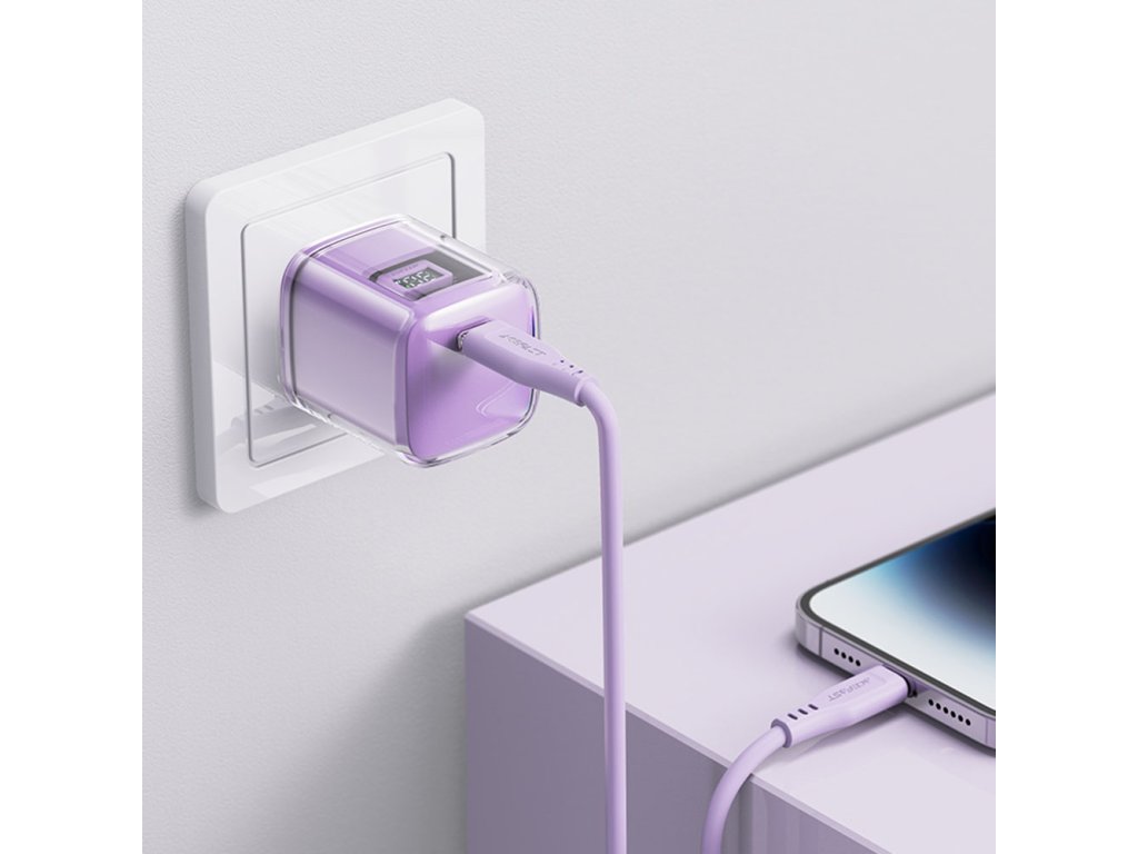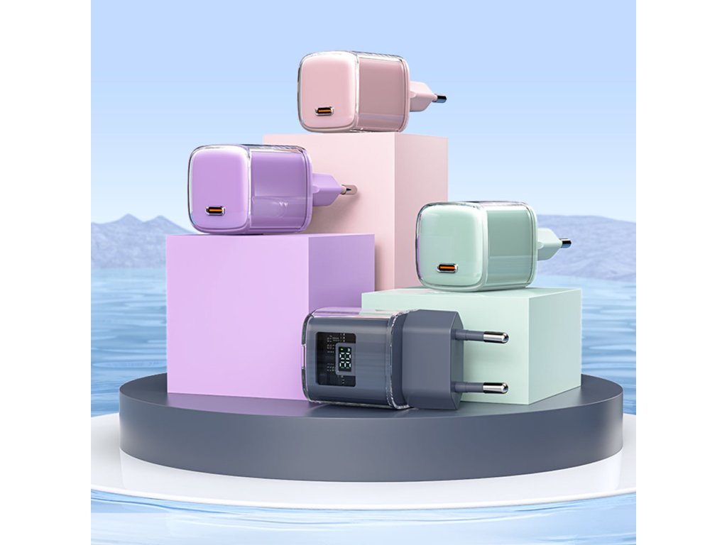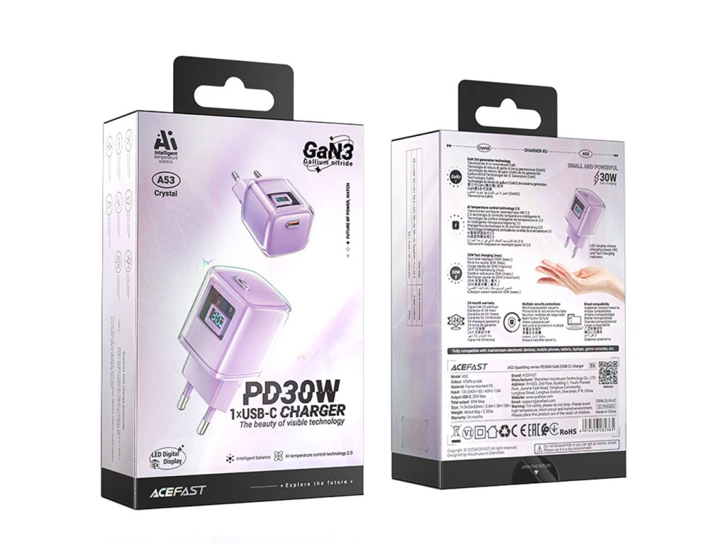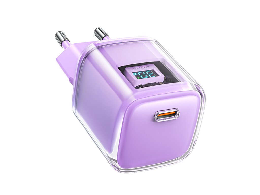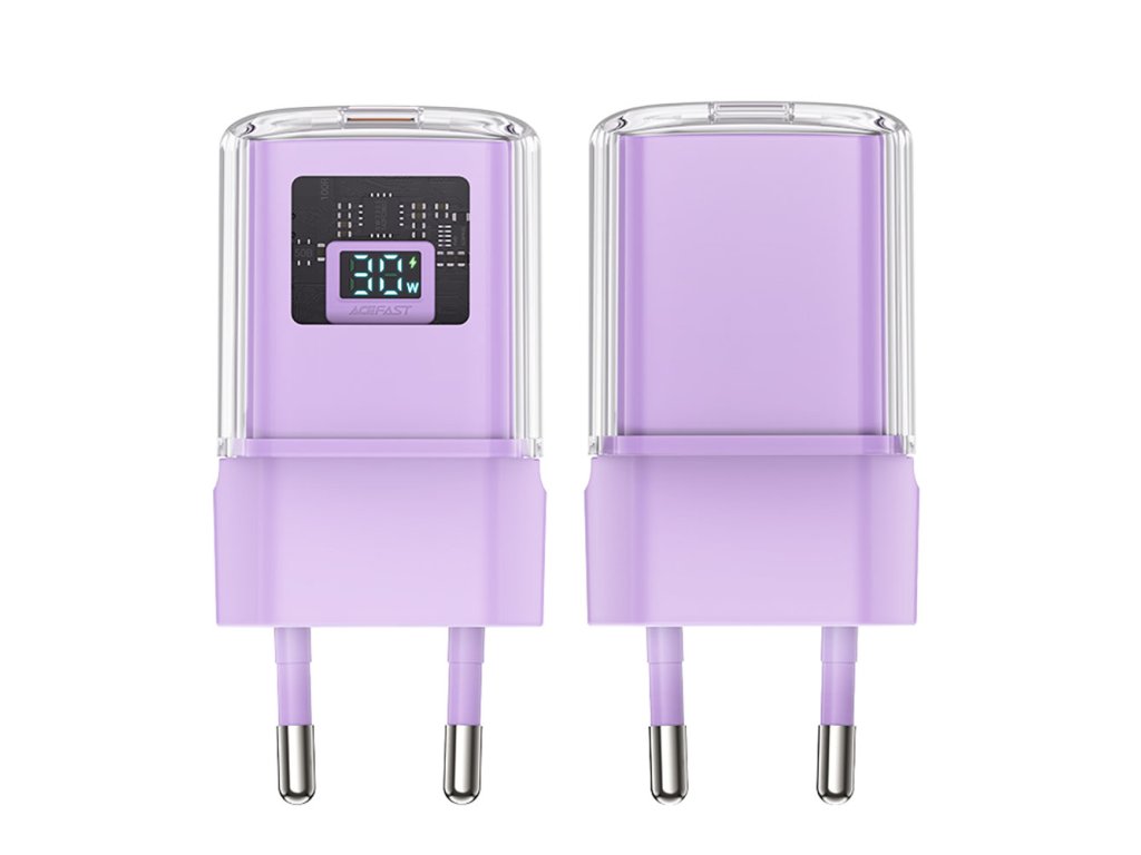 Acefast GaN nabíječka Sparkling A53 - USB-C, 30 W PD, EU zástrčka, LED displej, fialová