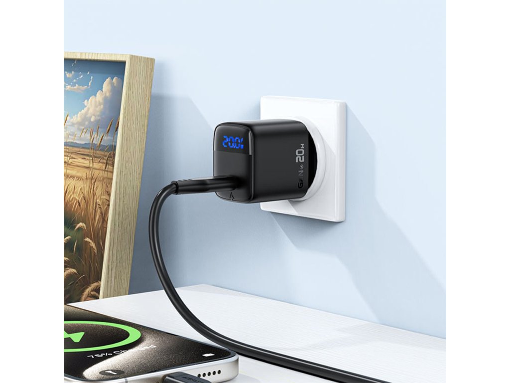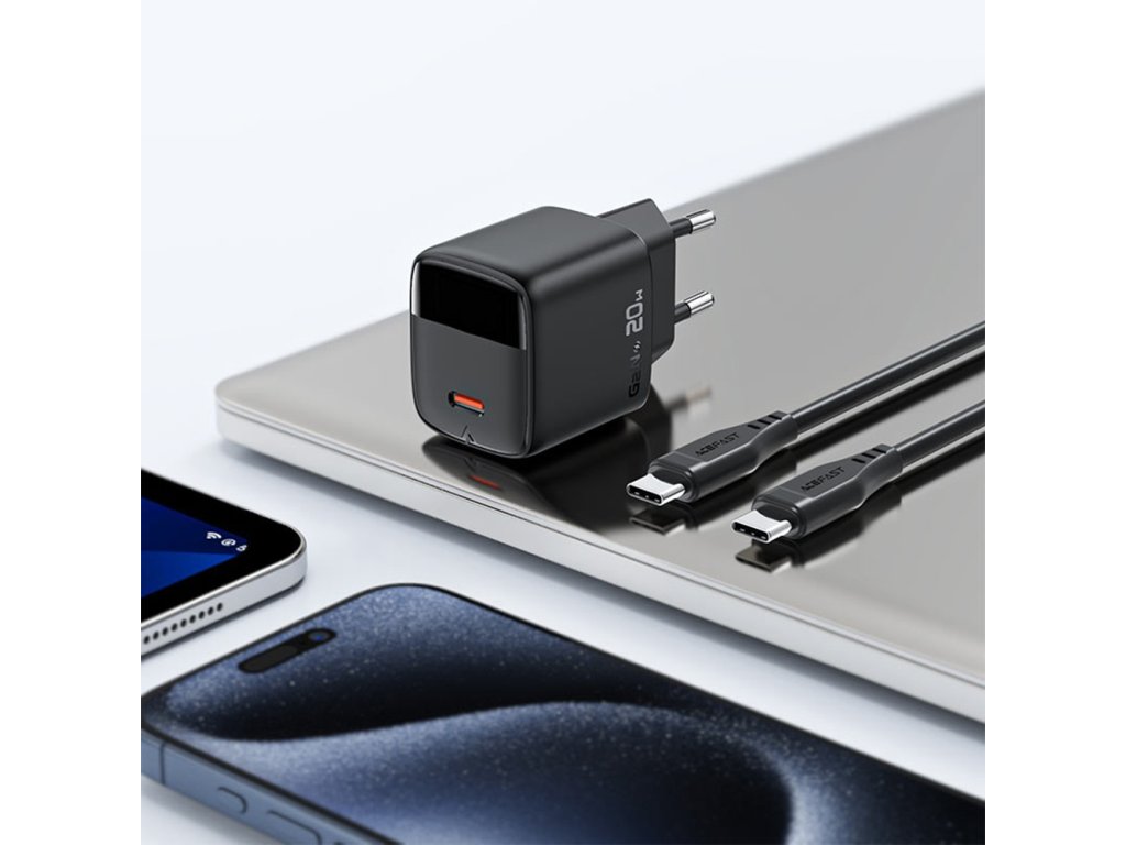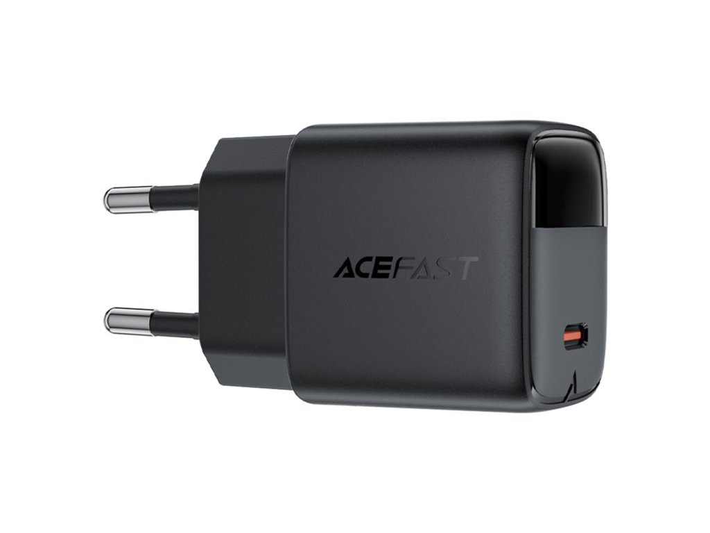 Acefast - Wall Charger A113 síťová nabíječka (digitální displej, rychlonabíjení, GaN technologie, USB-C, PD20W, USB-C kabel 1 m) - černá