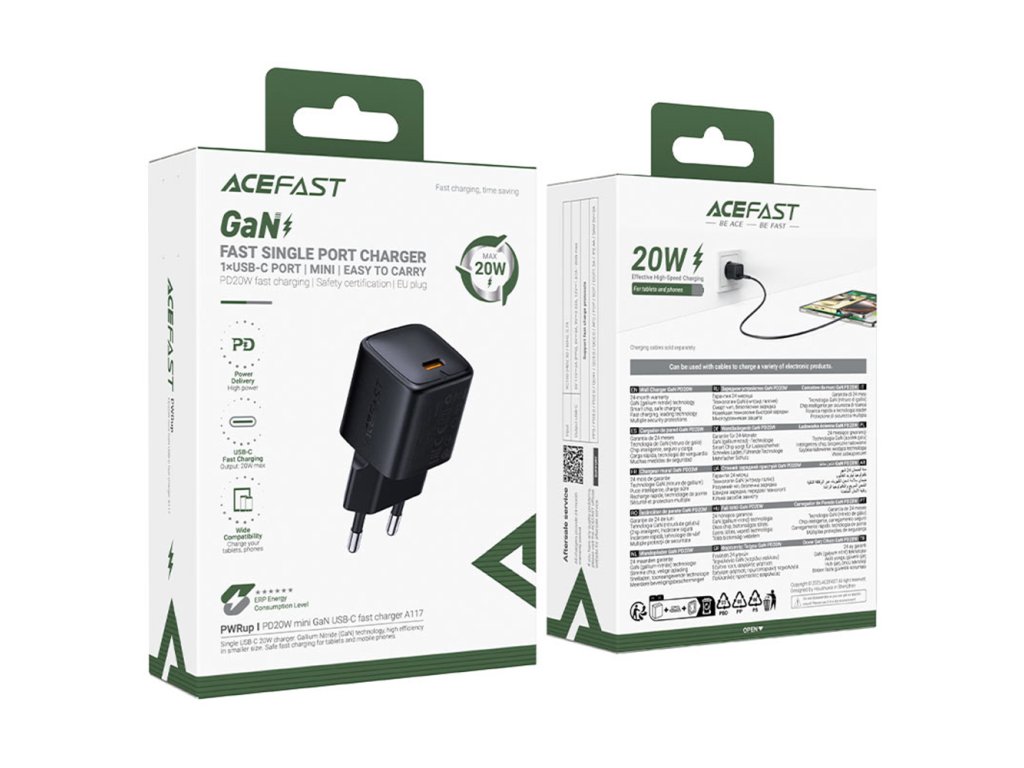 Acefast - Wall Charger A117 síťová nabíječka (GaN technologie, PD20W, rychlonabíjení, mini design, 1× USB-C) - černá