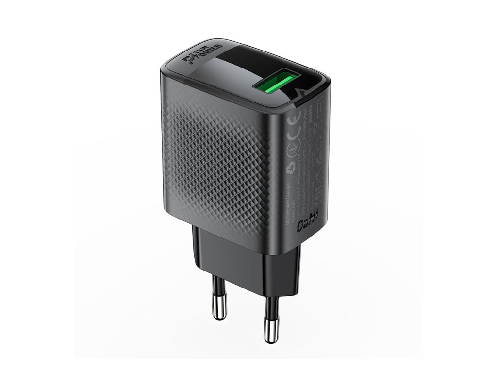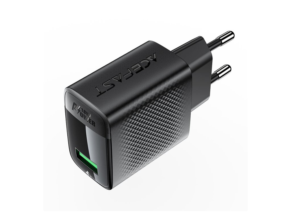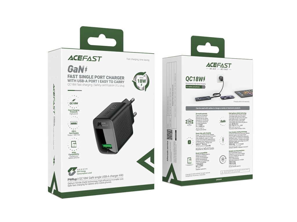 Acefast - Wall Charger A90 síťová nabíječka (USB, 18W, GaN technologie, rychlonabíjení) - černá