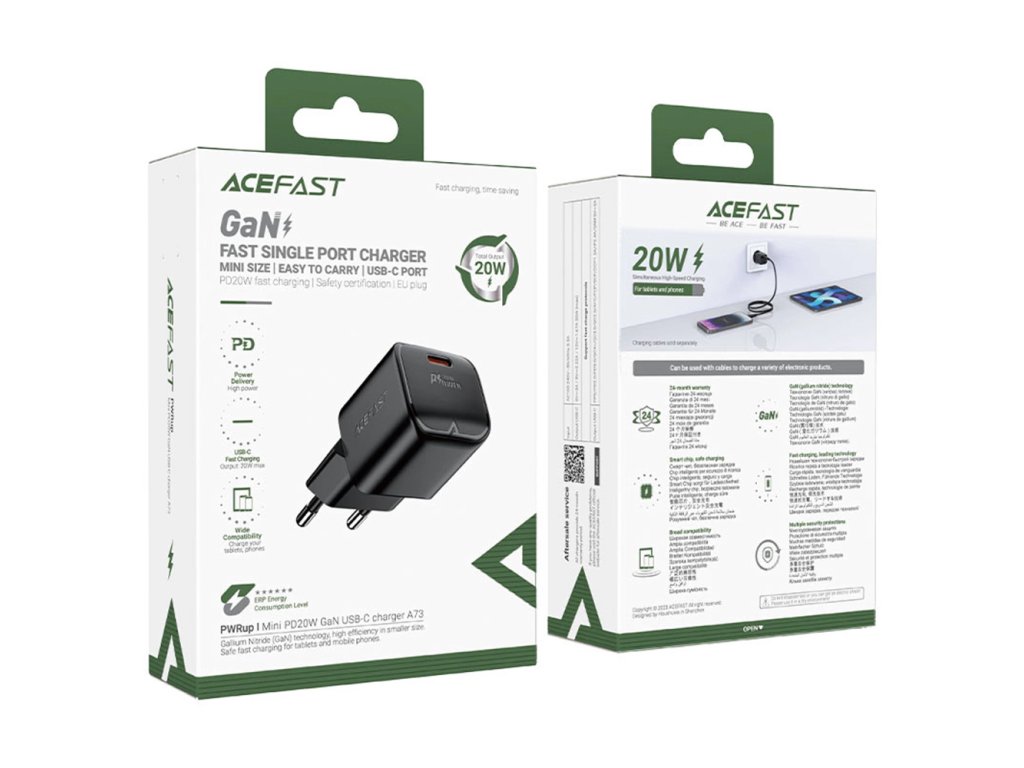 Acefast - Wall Charger Mini A73 síťová nabíječka (GaN technologie, PD20W, rychlonabíjení, kompaktní design) - černá