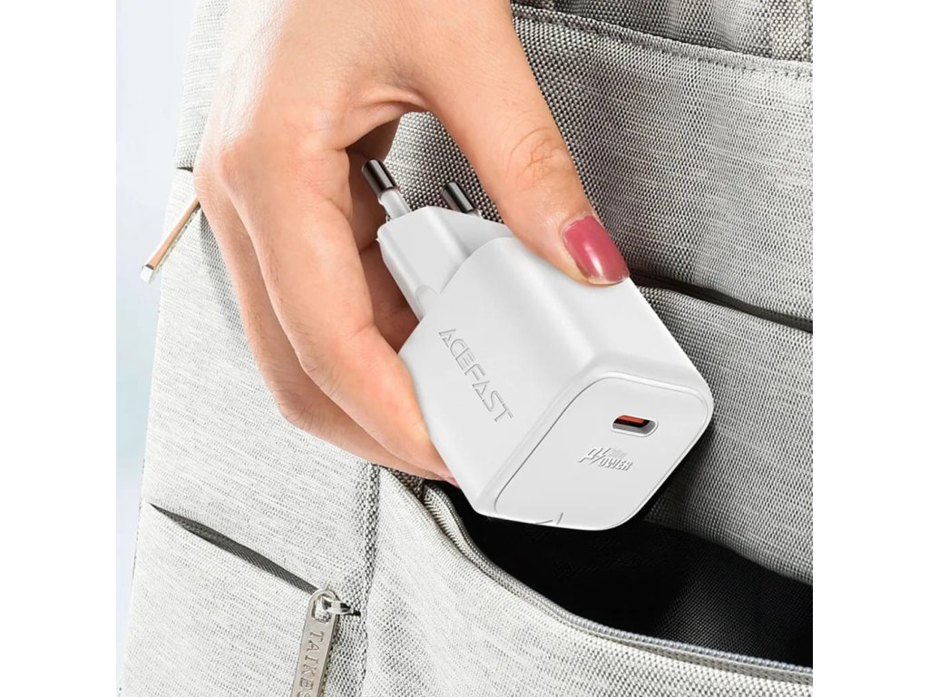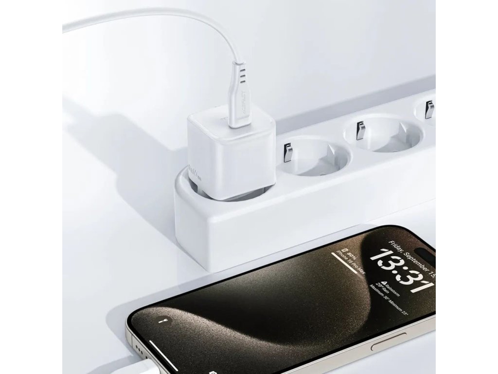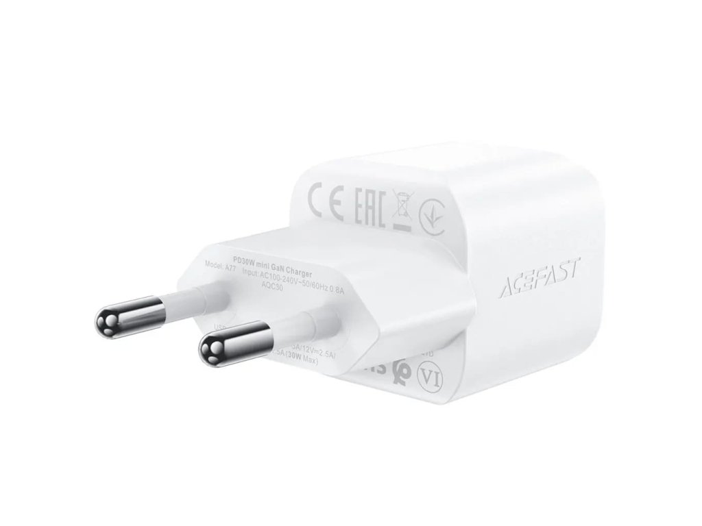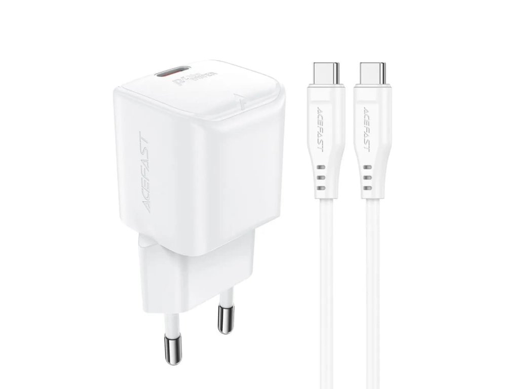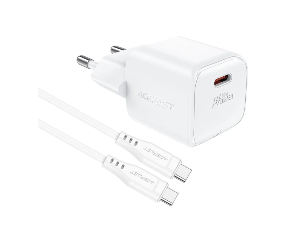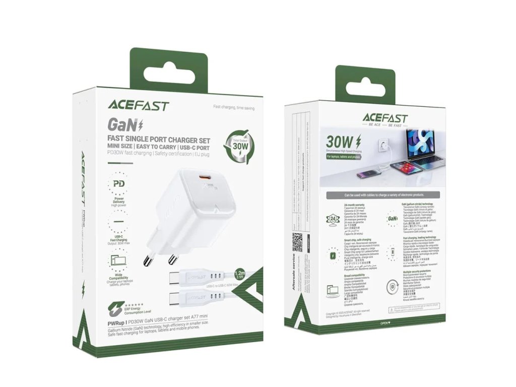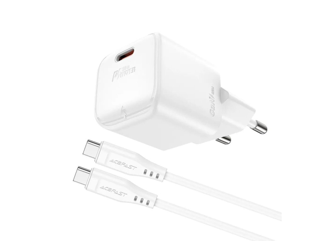 Acefast - Wall Charger Set A77 síťová nabíječka (USB-C kabel v balení, USB-C mini GaN, PD30W, Power Delivery, rychlonabíjení) - bílá