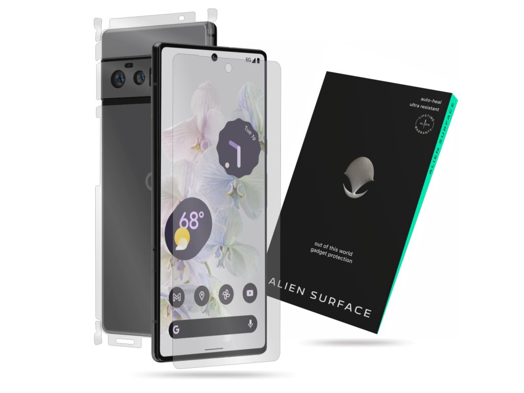 Fólie Alien Surface 360° pro Google Pixel 6 Pro zcela pokrývá displej, zadní stranu, boky a kameru tohoto zařízení. Kupte si nyní fólii Alien Surface a získejte doživotní záruku!