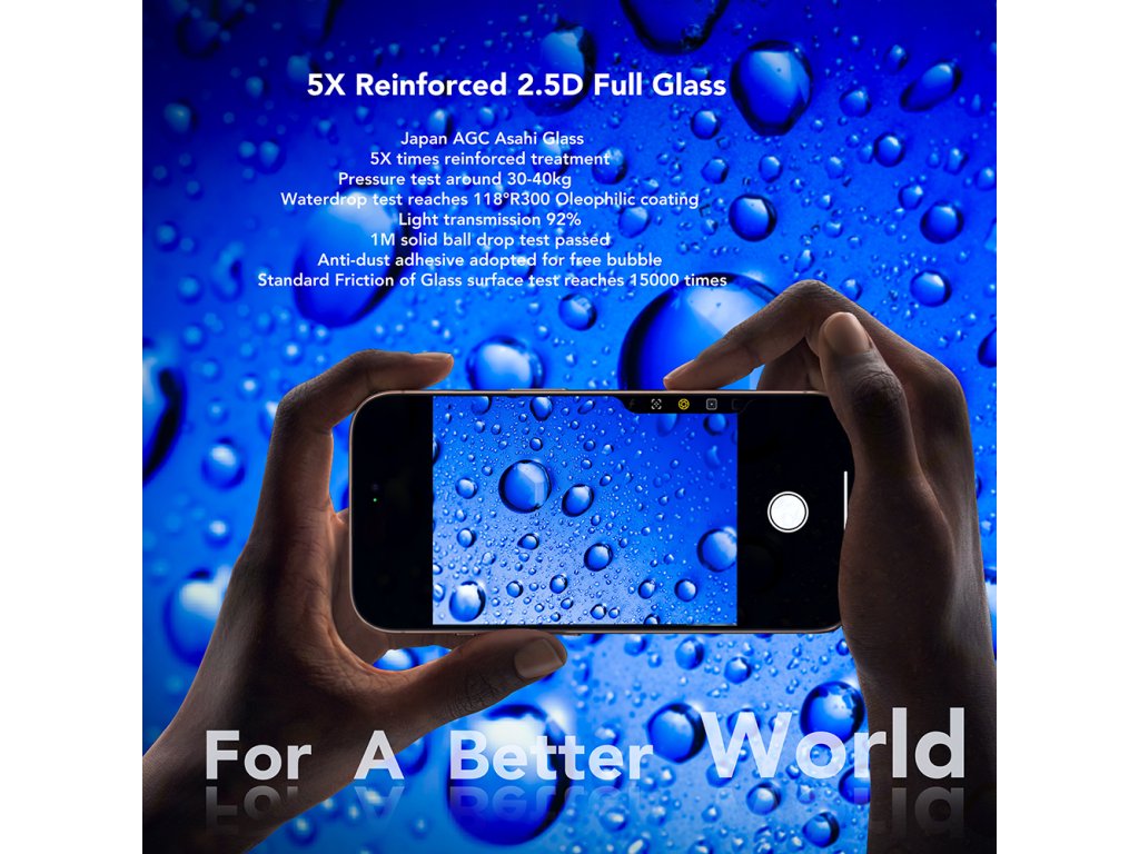 Proces zpevnění a tlakové testy zajišťují vynikající ochranu proti nárazům a poškrábání, udržující obrazovku v bezpečí.