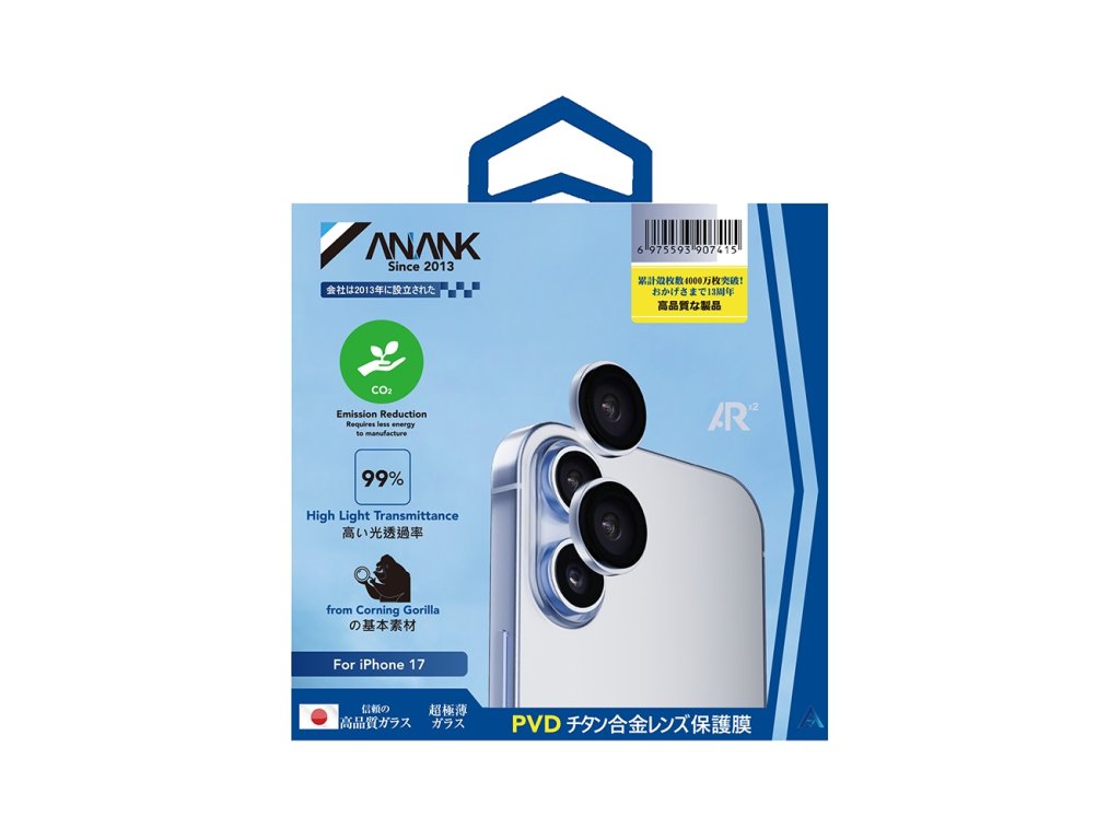 ANANK – AR Lens Guard kovový rámeček s ochranným sklem objektivu na iPhone 17 – modrý