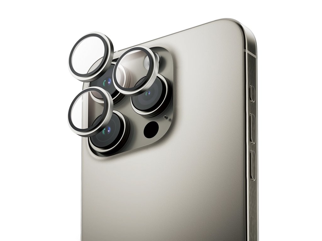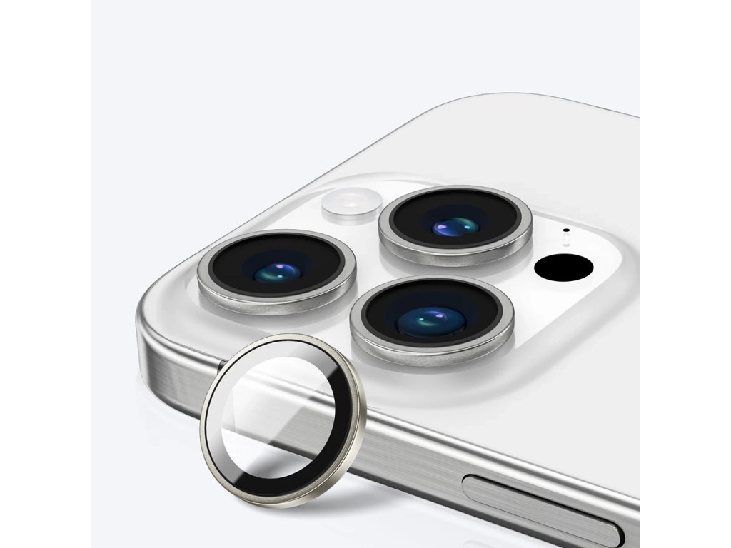 Ultra-odolný titanový rám chrání čočky fotoaparátu smartphonu iPhone 16 Pro před nárazy a poškrábáním, aniž by přidával objem nebo hmotnost navíc.
