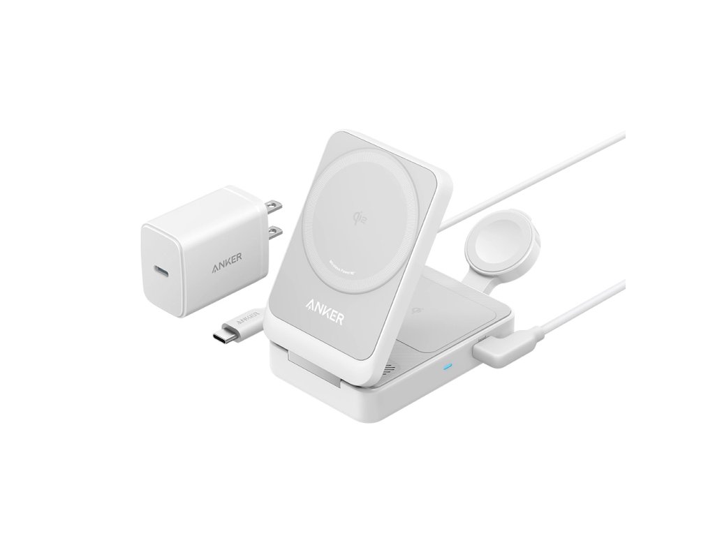 Anker – bezdrátová nabíjecí stanice MagGo 3v1 Qi2 pro Apple, 15 W, USB-C nabíječka a kabel – bílý