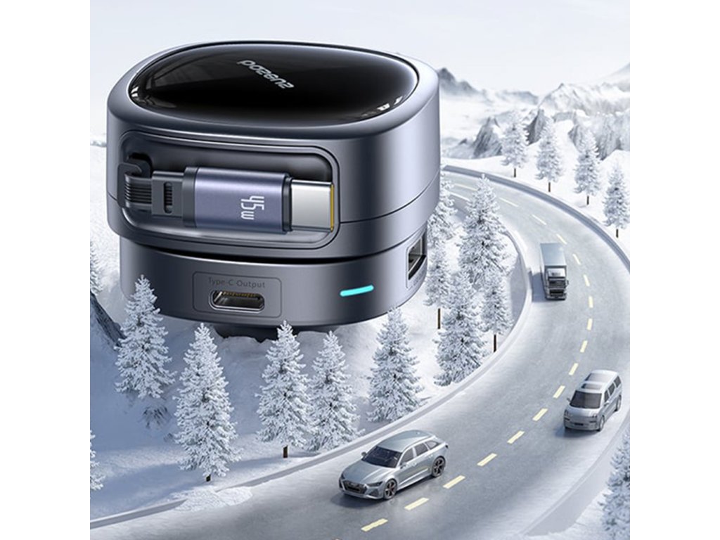 Retrakční kabel o délce 80 cm s výkonem 45W zajišťuje stabilní napájení a snadné ovládání délky.