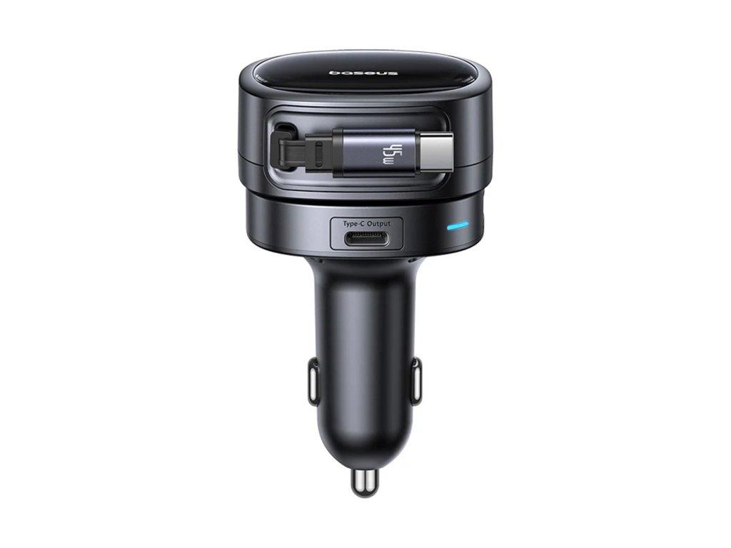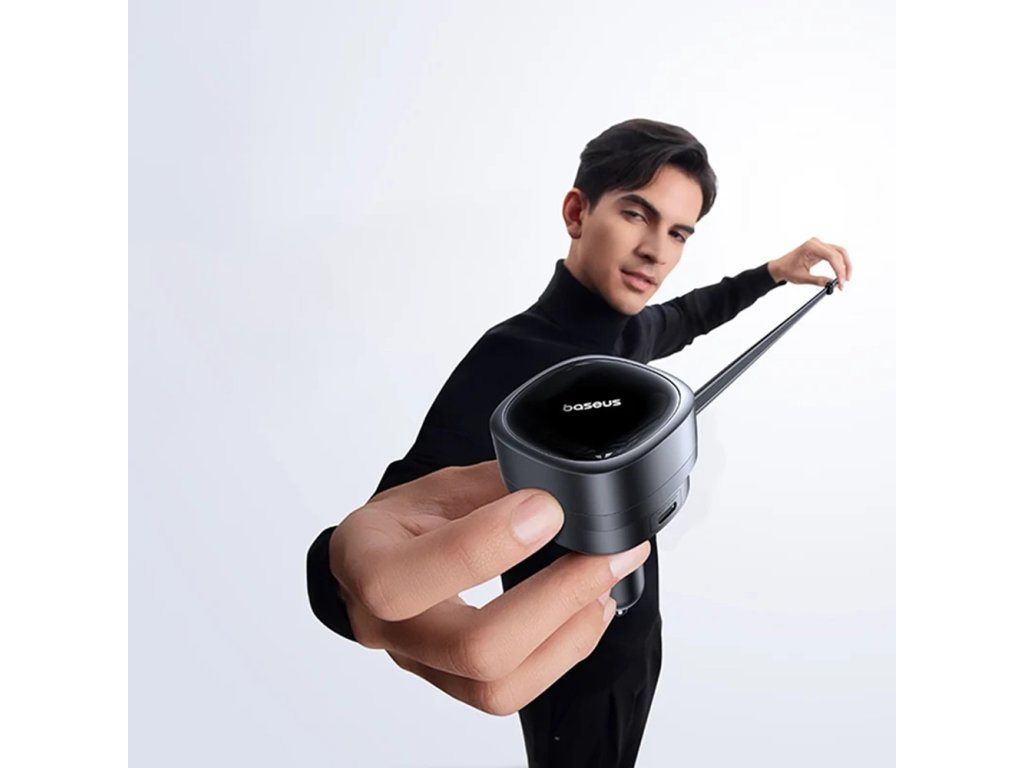 Baseus – Car Charger PrimeTrip VR1 autonabíječka s výsuvným kabelem 2× USB-C + USB 60W – černá