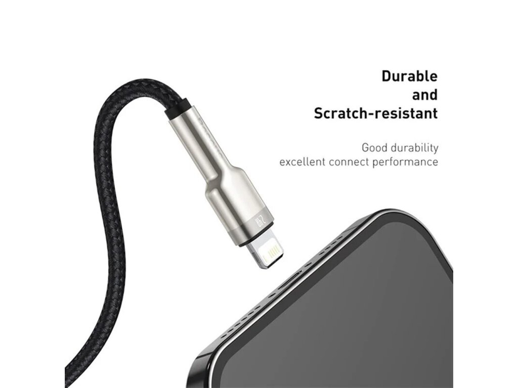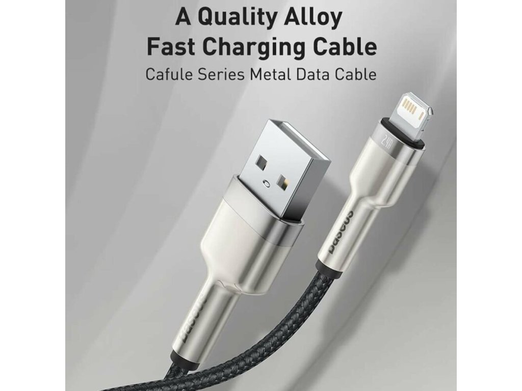 Baseus – datový kabel Cafule Series Metal USB pro Lightning, 2,4 A, 480 Mbps, 25 cm – černý