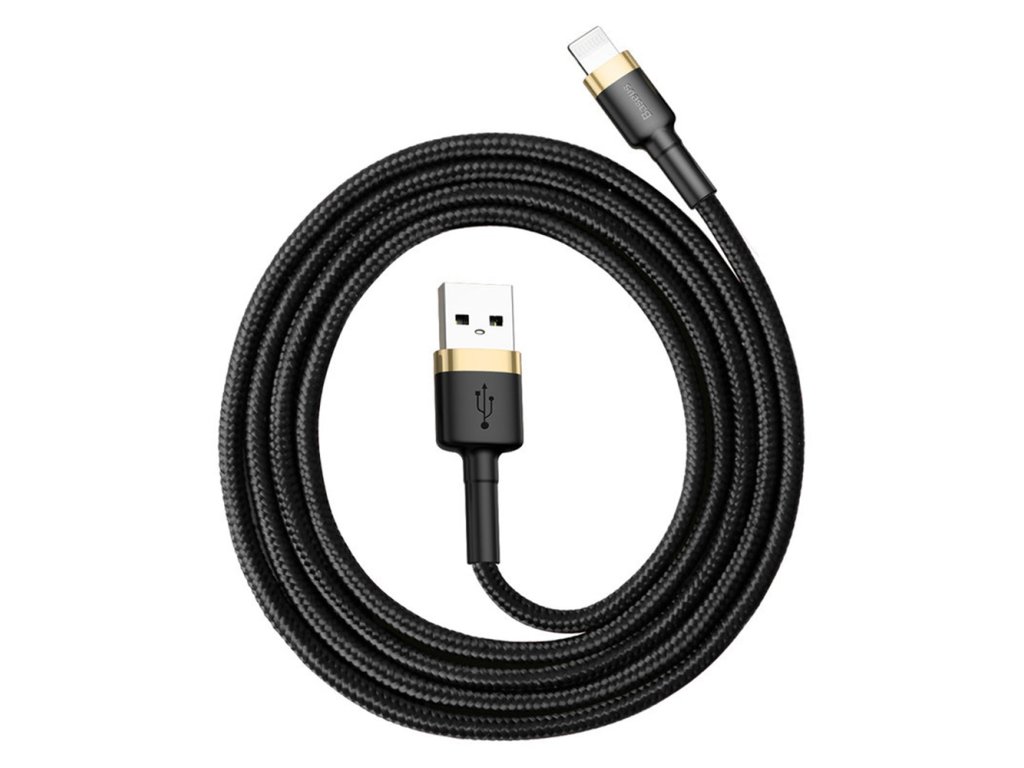 Baseus – datový kabel Cafule USB na Lightning, 2,4 A, 480 Mbps, 1 m – černo-zlatý