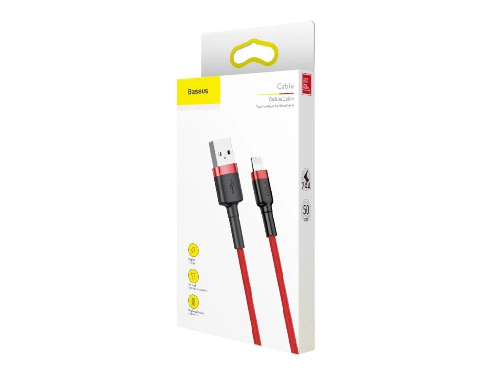 Baseus – datový kabel Cafule USB pro Lightning, QC 3.0, 2,4 A, 0,5 m – červený