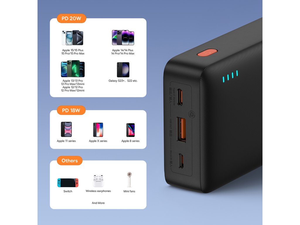9...100%⭐Nabijte si rychle a bezpečně své zařízení s tímto externím akumulátorem 20000 mAh od Baseus. Pořiďte si právě teď power banku UBS Type-C!