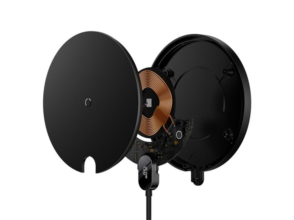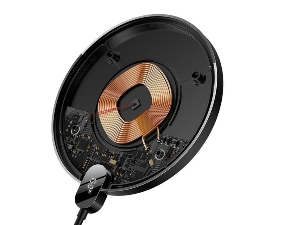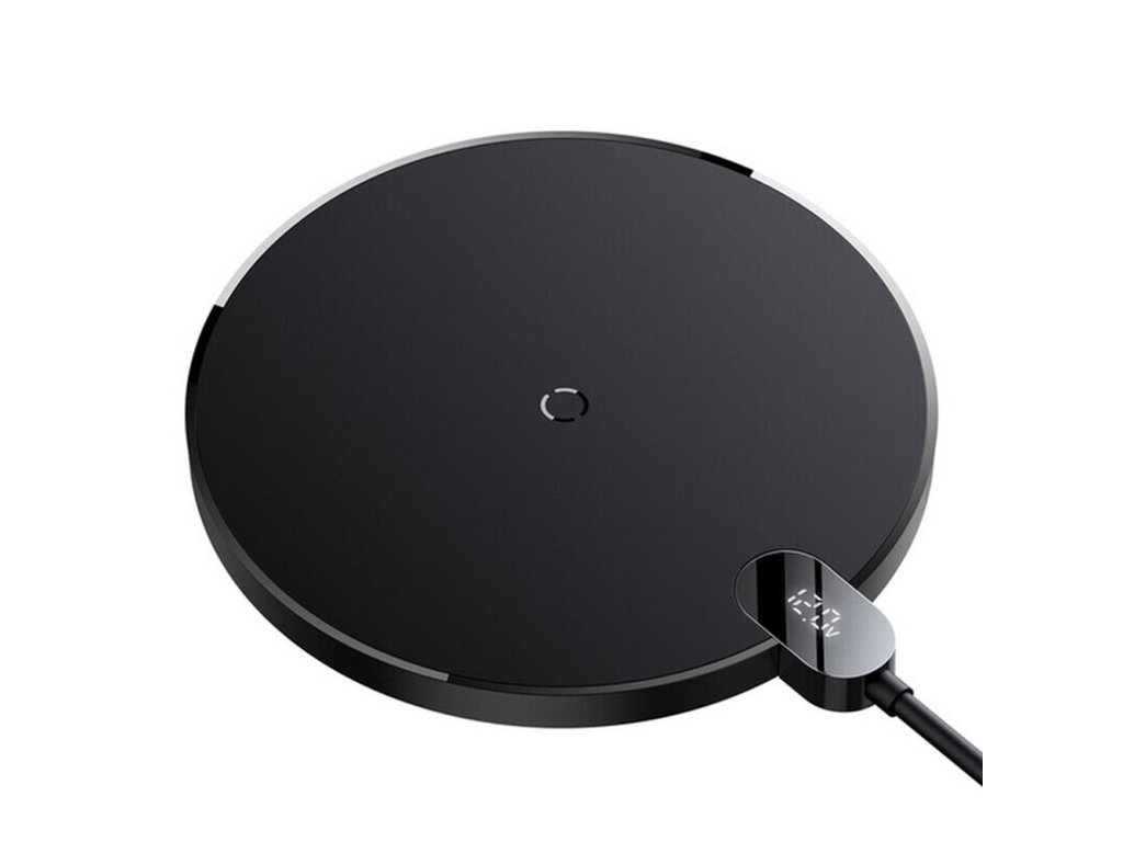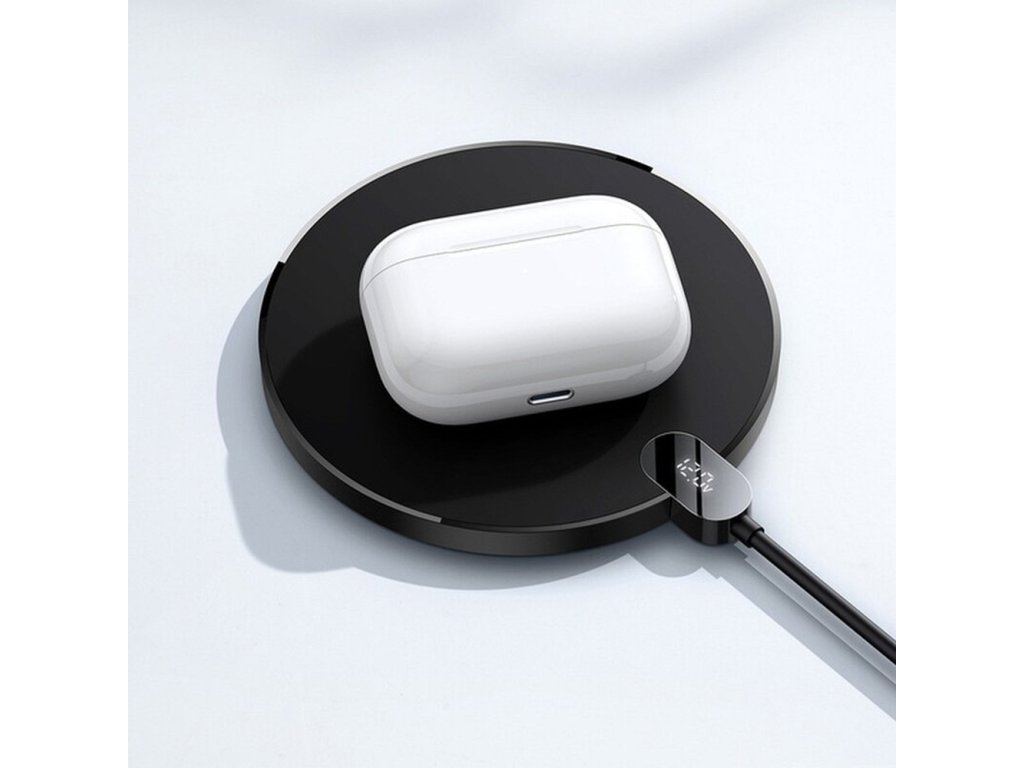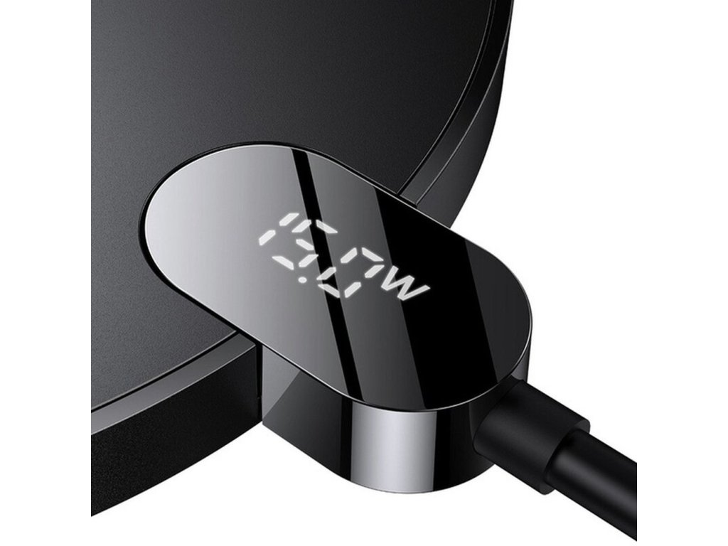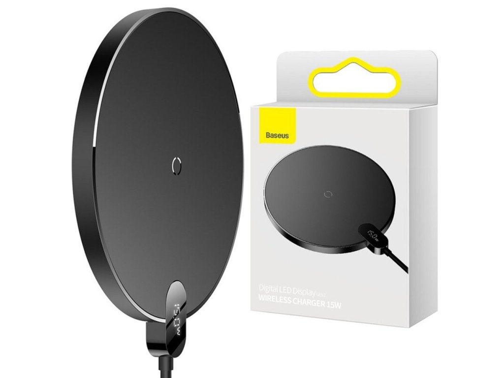 Baseus bezdrátová nabíječka (CCED000001) – pro telefon a sluchátka, digitální displej, 15W, černá