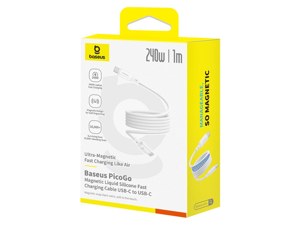 Baseus - Data Cable PicoGo magnetický datový a nabíjecí kabel USB-C pro USB-C Fast Charge 240 W (480 Mb/s), silikonový, 1 m – bílý