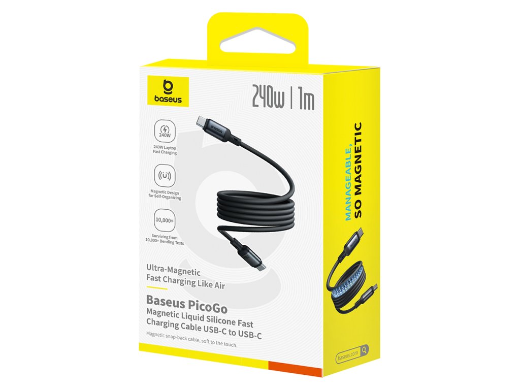 Baseus - Data Cable PicoGo magnetický datový a nabíjecí kabel USB-C pro USB-C Fast Charge 240 W (480 Mb/s), silikonový, 1 m – černý