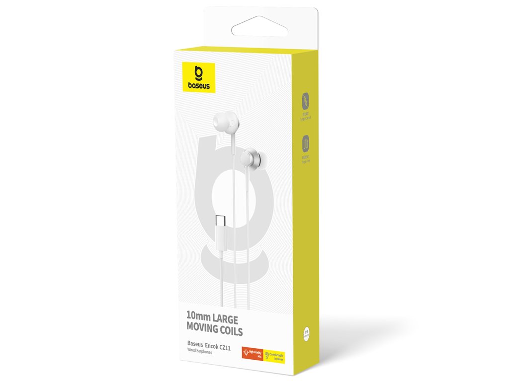 Baseus drátová sluchátka Encok CZ11 (A00164300213-Z1) – USB-C, do uší, bílá (Moon White)