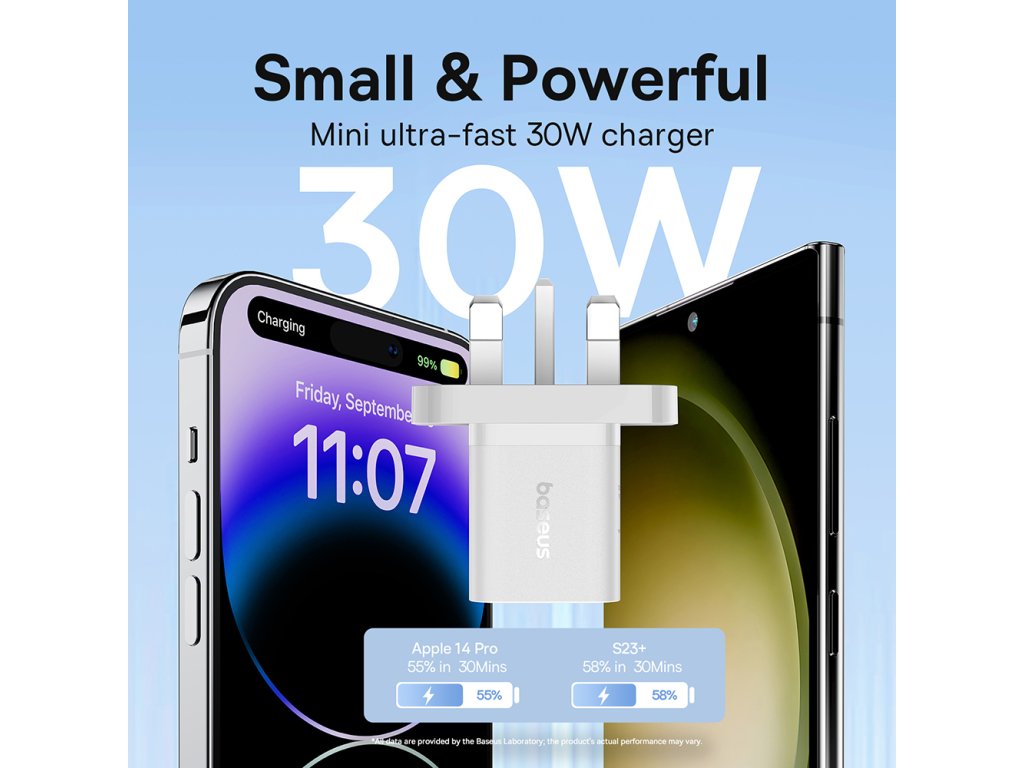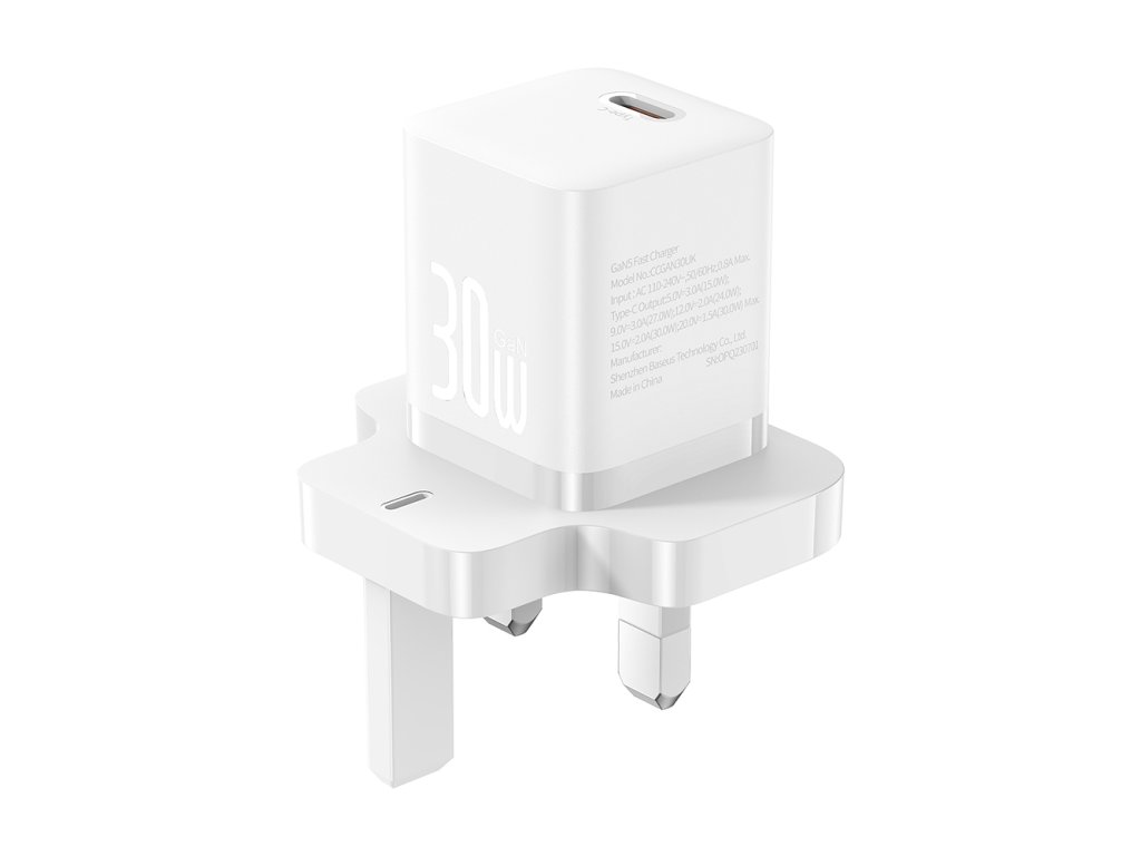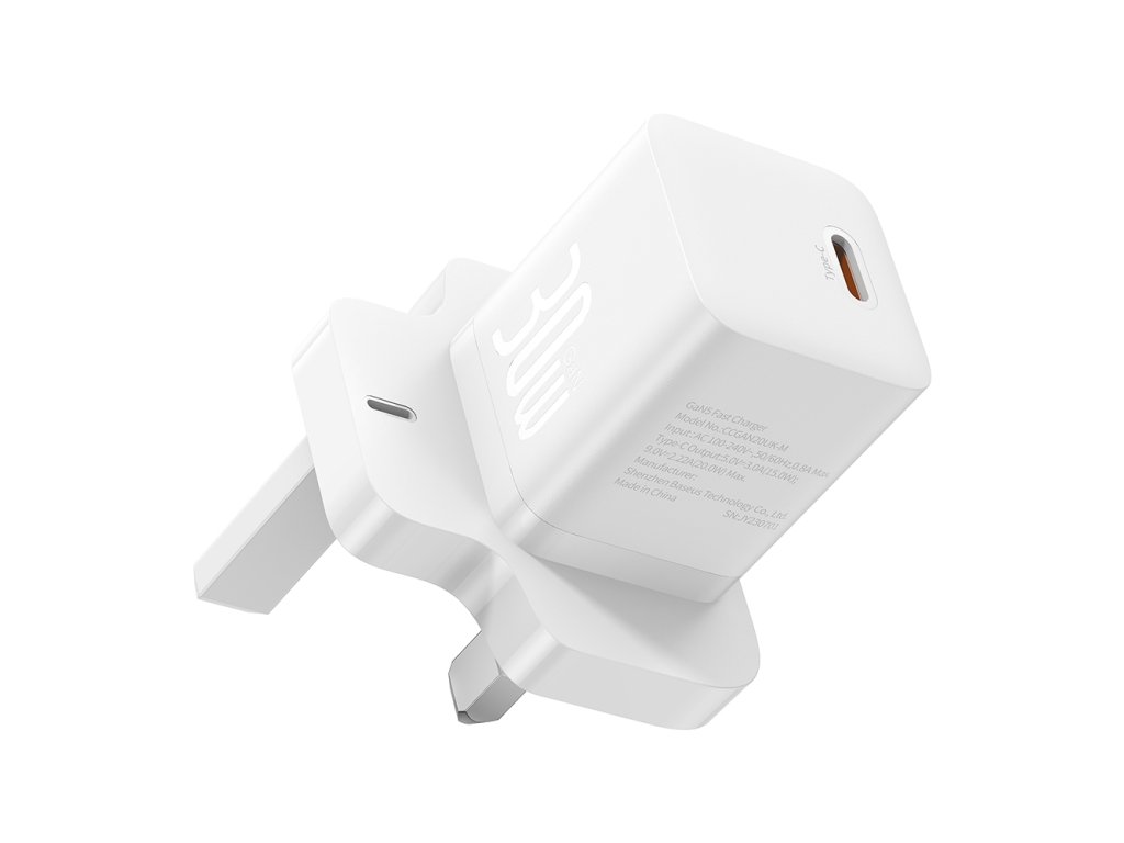 Baseus GaN5 nabíječka UK Plug (P10110906213-00) – USB-C, 30 W, rychlonabíječka, bílá