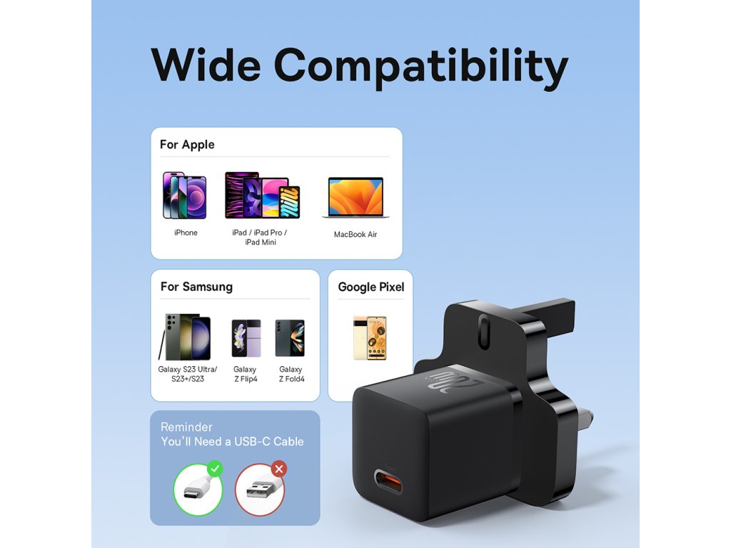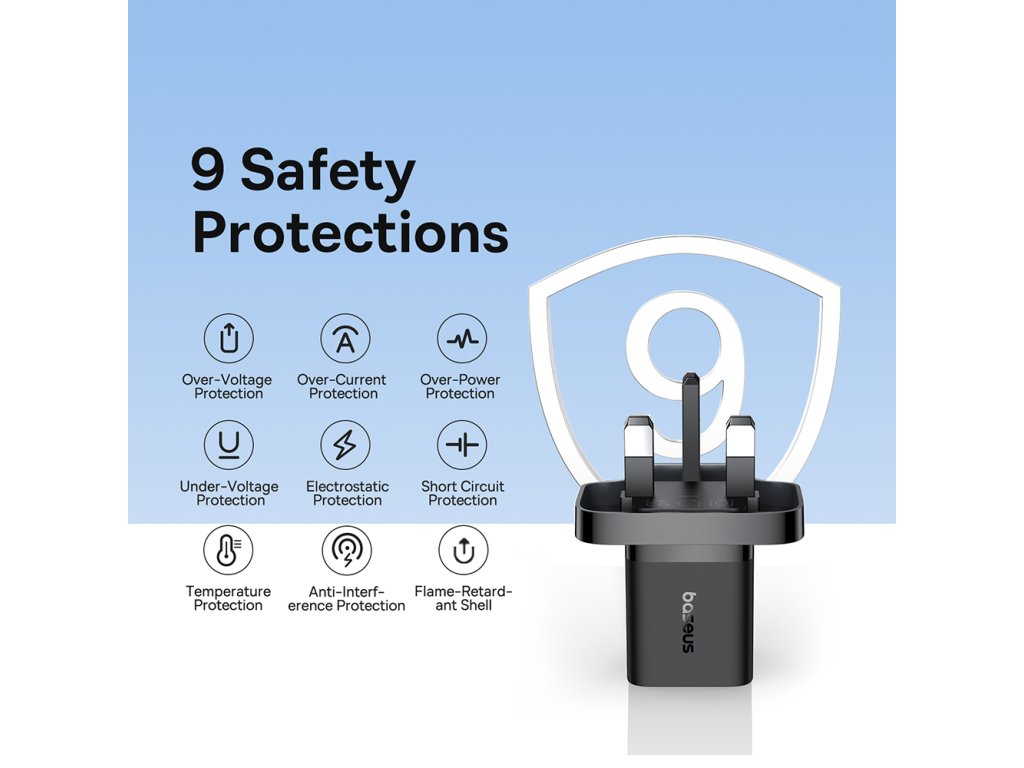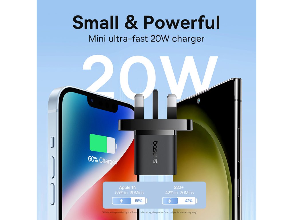 Baseus GaN5 nabíječka UK Plug (P10110907113-00) - USB-C, 20 W, Quick Charge, černá