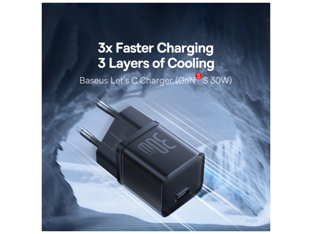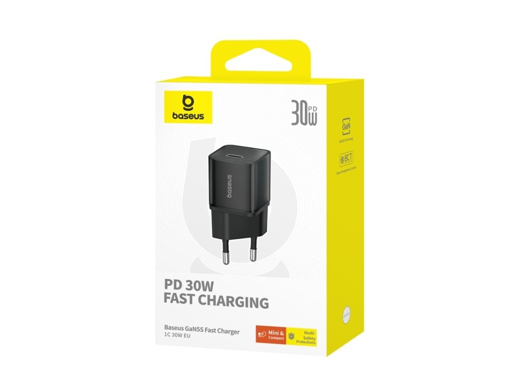 Baseus GaN5S nabíječka (P10162504113-00) – USB-C, 30 W, rychlé nabíjení, černá