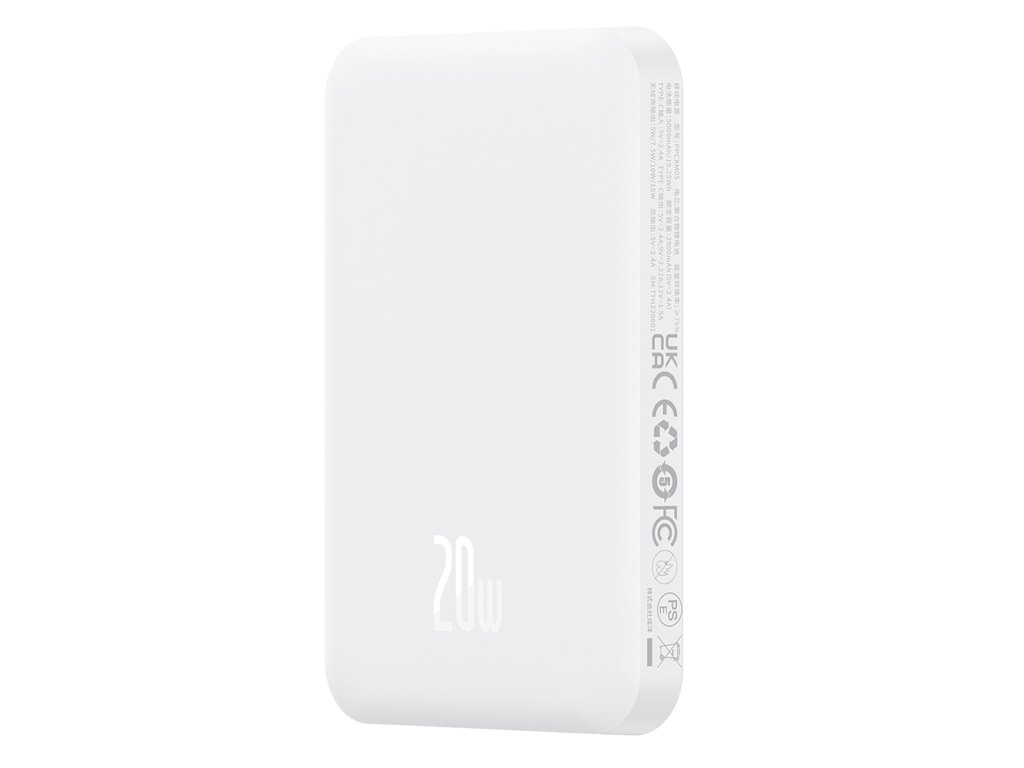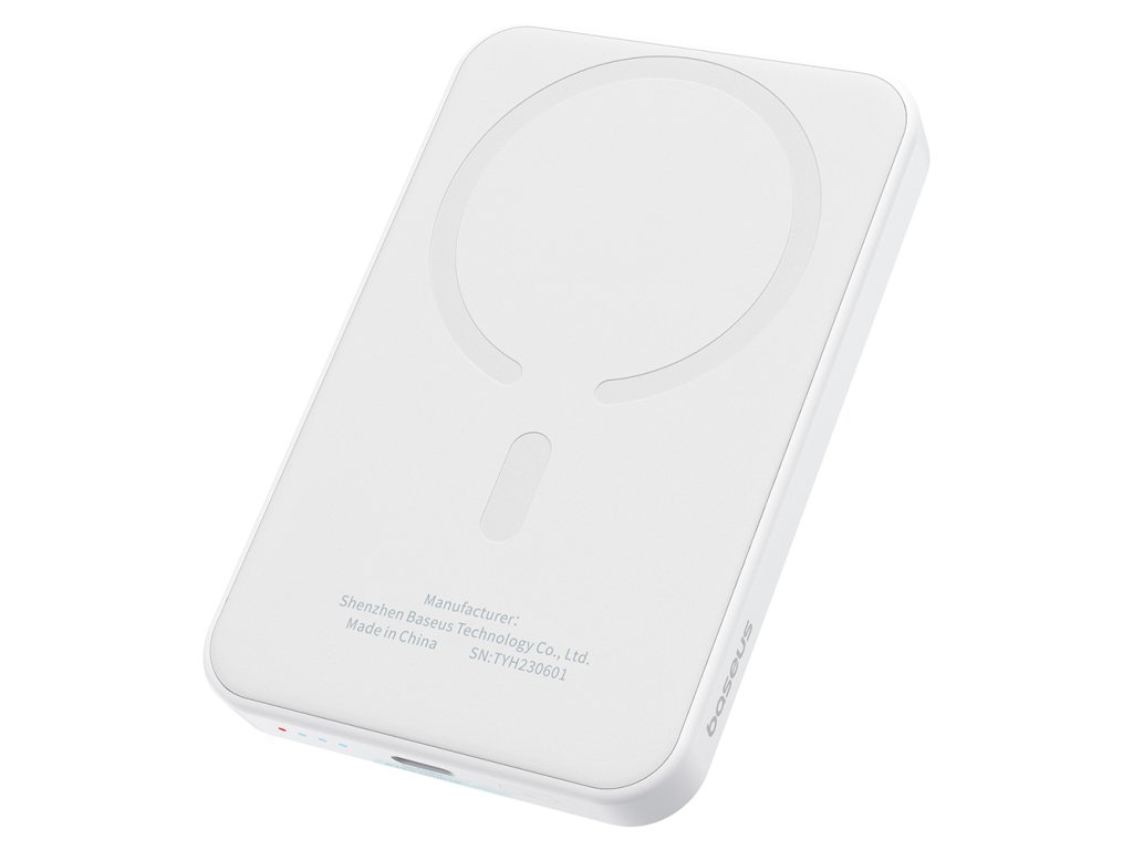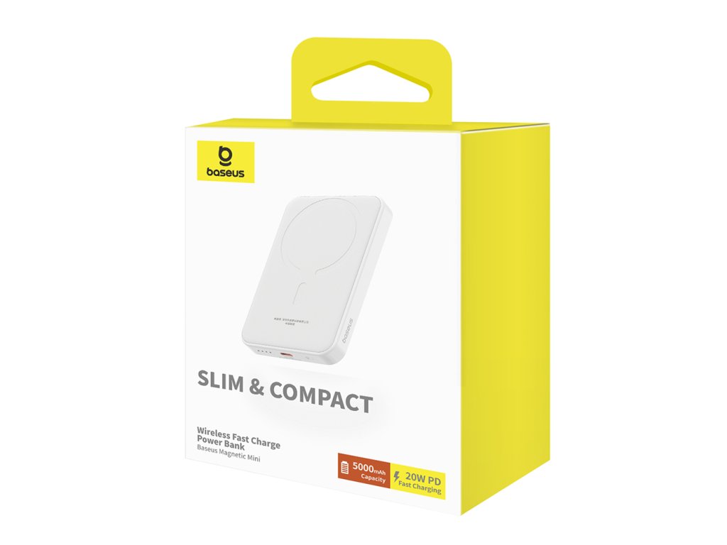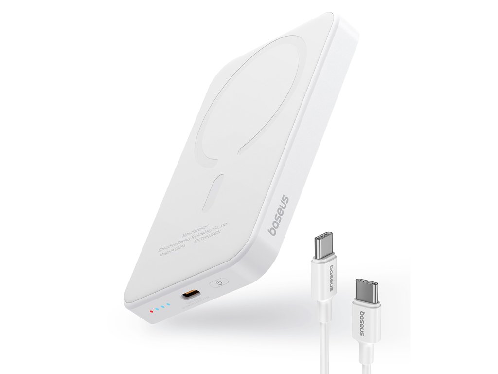 Baseus - Mini - powerbanka, USB-C, MagSafe nabíjení, 20 W, 5000 mAh, kabel USB-C, 30 cm - bílá