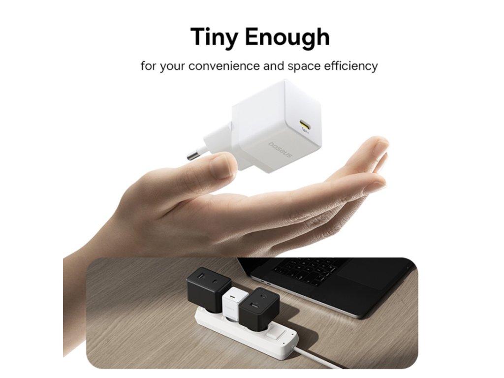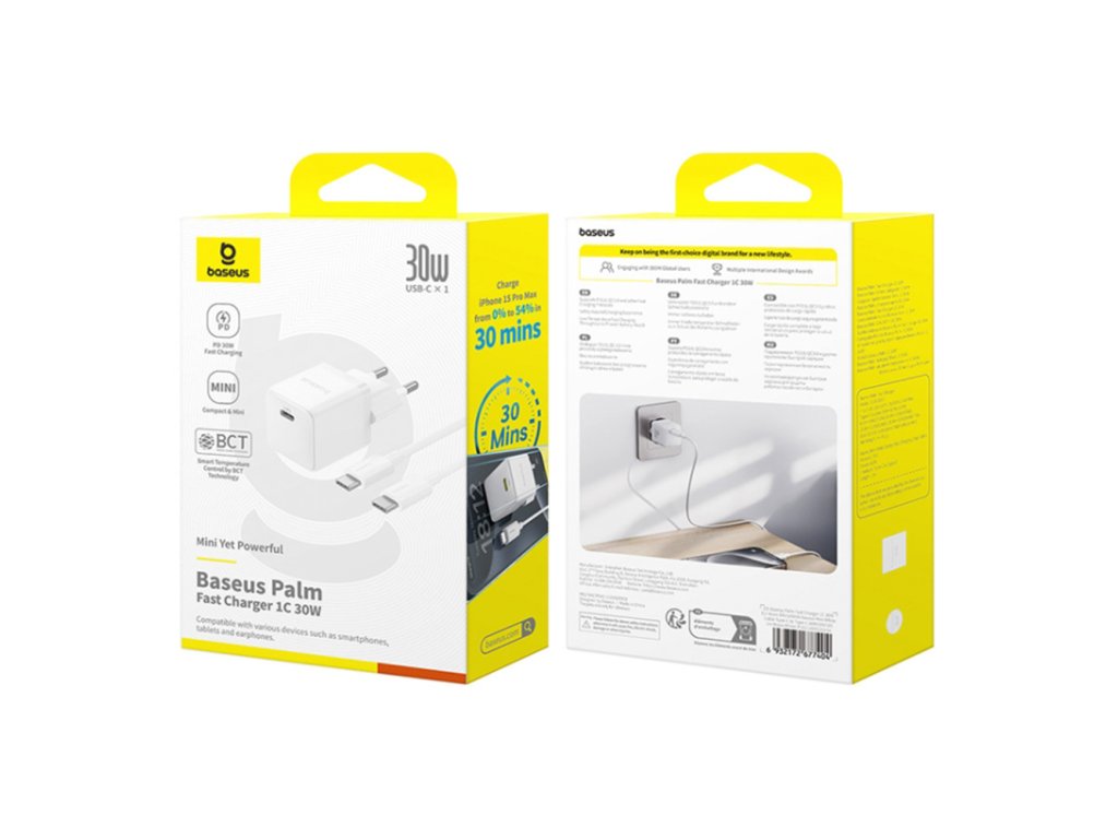 Baseus nabíječka Palm (P10111605213-01) – USB-C, PD 30W, 5V/3A, USB-C kabel 1m, Moon White