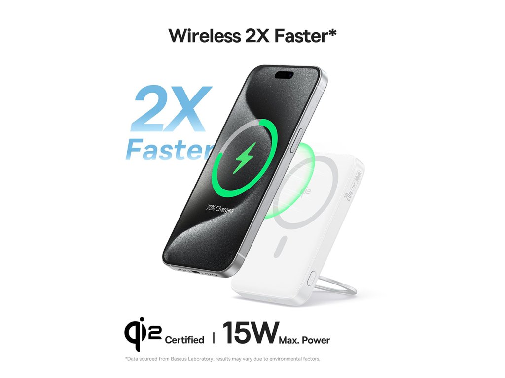 Externí baterie Qi2 je dvakrát rychlejší než běžná baterie Qi. Dodává vašemu telefonu energii bezdrátově až 15W. Je skvělá.
