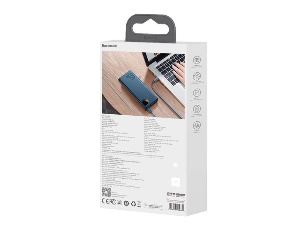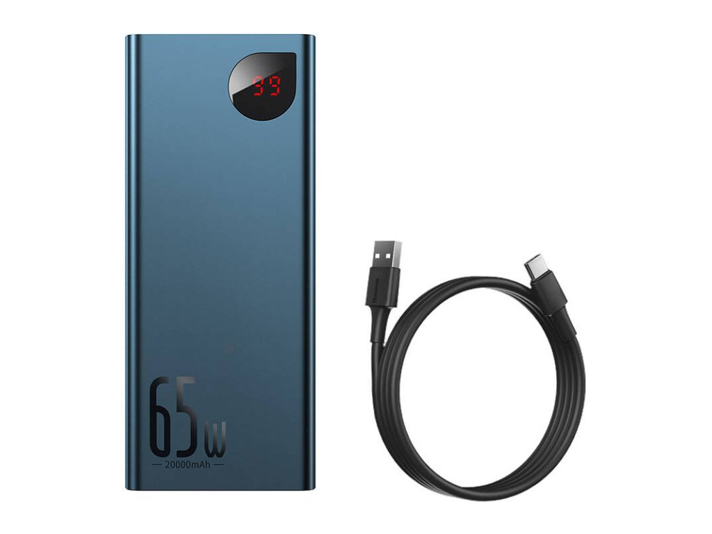 Baseus Powerbanka Adaman Metal 20000mAh PD QC 3.0 65W 2xUSB USB-C micro USB (modrá)