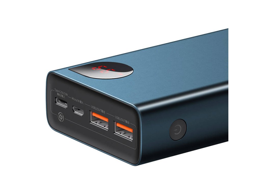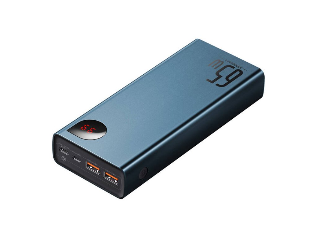 S powerbankou od společnosti Baseus rychle nabijete svůj notebook nebo telefon. Zařízení podporuje standard rychlého nabíjení Power Delivery 65 W, takže baterie vašeho MacBooku bude plně nabitá za pouhé 2 hodiny. Powerbanka je vybavena dvěma výstupními porty USB a výstupními porty USB-C a micro USB/vstupními porty.