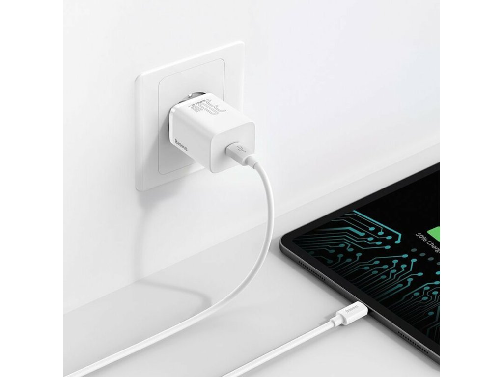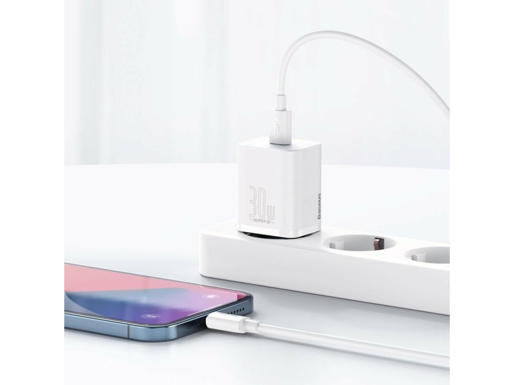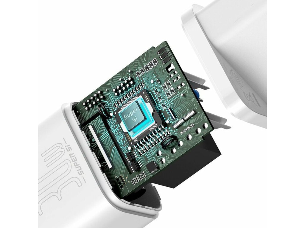 Baseus - Wall Charger Super Si síťová nabíječka (USB-C, rychlonabíjení, 30W) - bílá