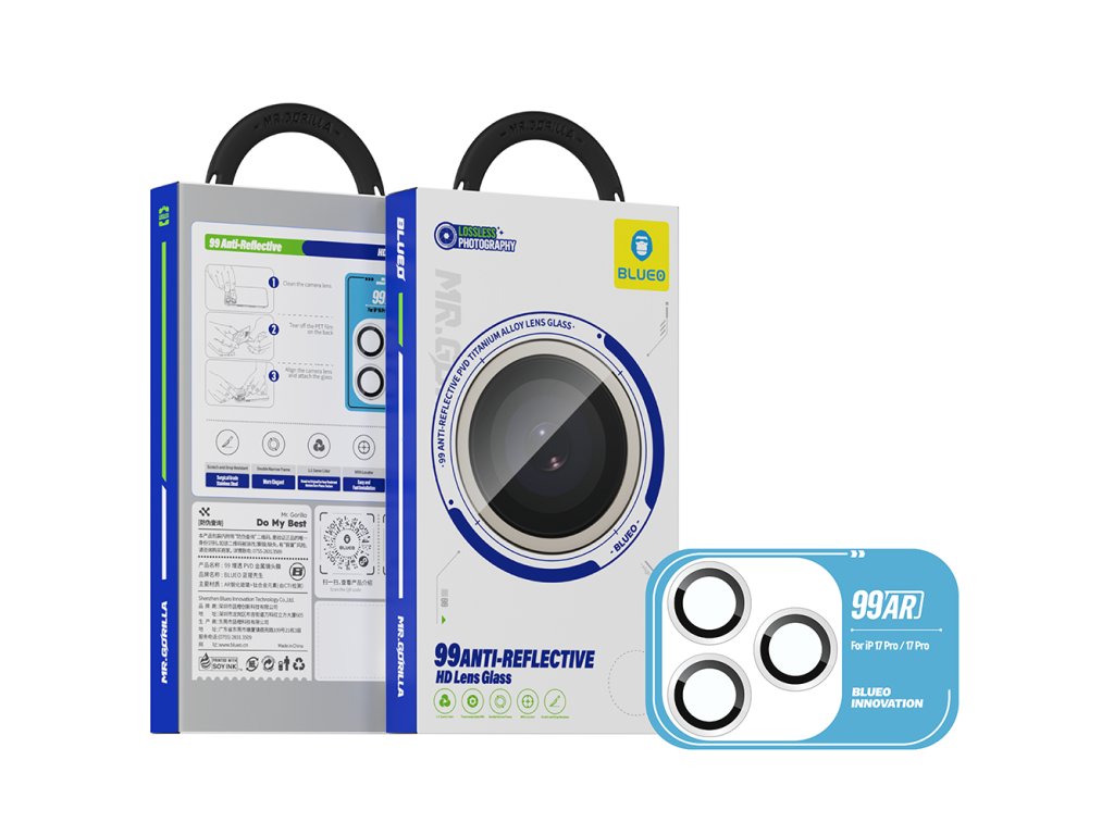 Blueo – 99 Anti-Reflective sklo objektivu pro iPhone 17 Pro / iPhone 17 Pro Max – stříbrné