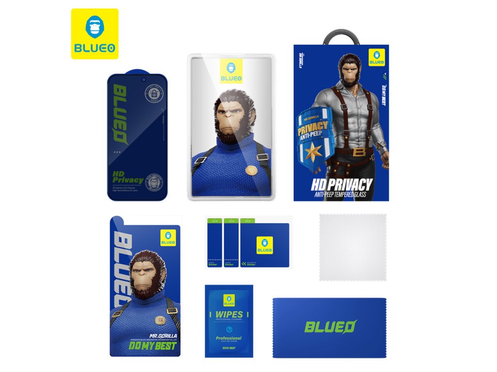 Vyrobená z tvrzeného skla s tvrdostí 9H, fólie Blueo účinně chrání obrazovku telefonu proti náhodným pádům, poškrábání a prasklinám.