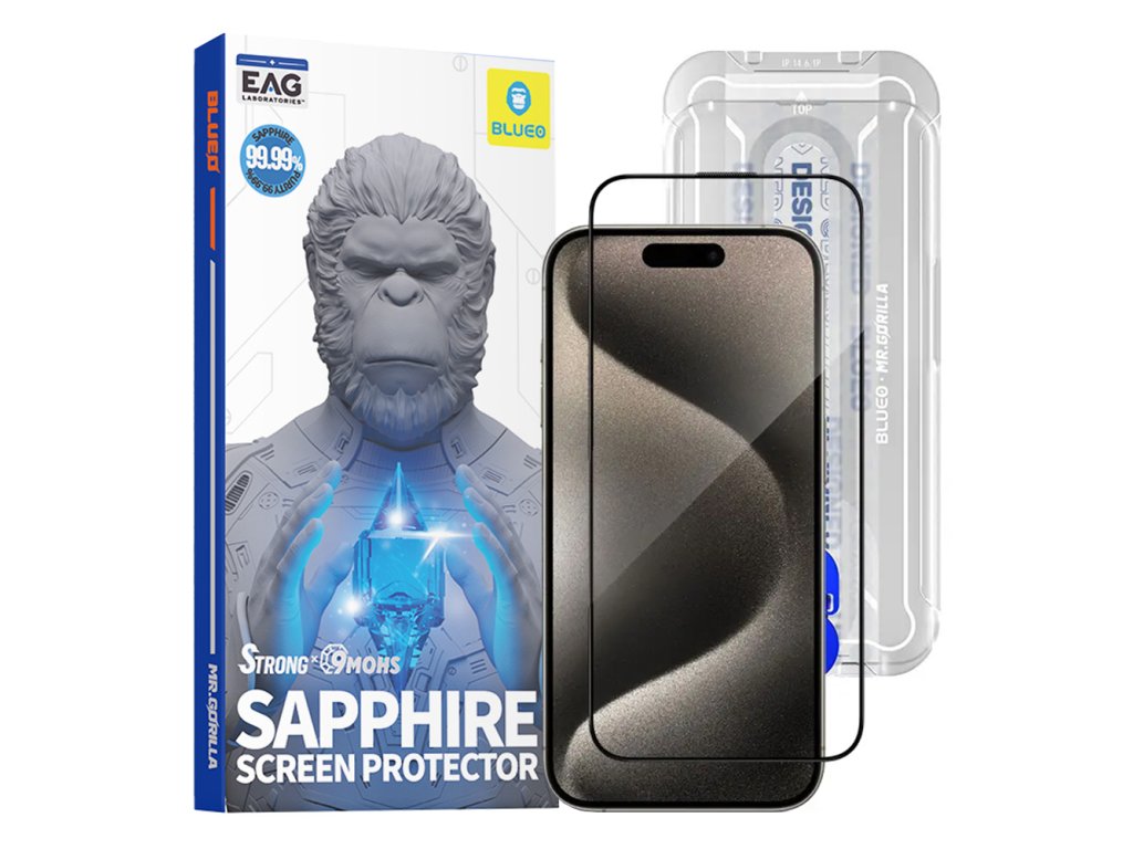Blueo - Sapphire ochranné sklo s aplikátorem pro iPhone 15 Pro Max - černá